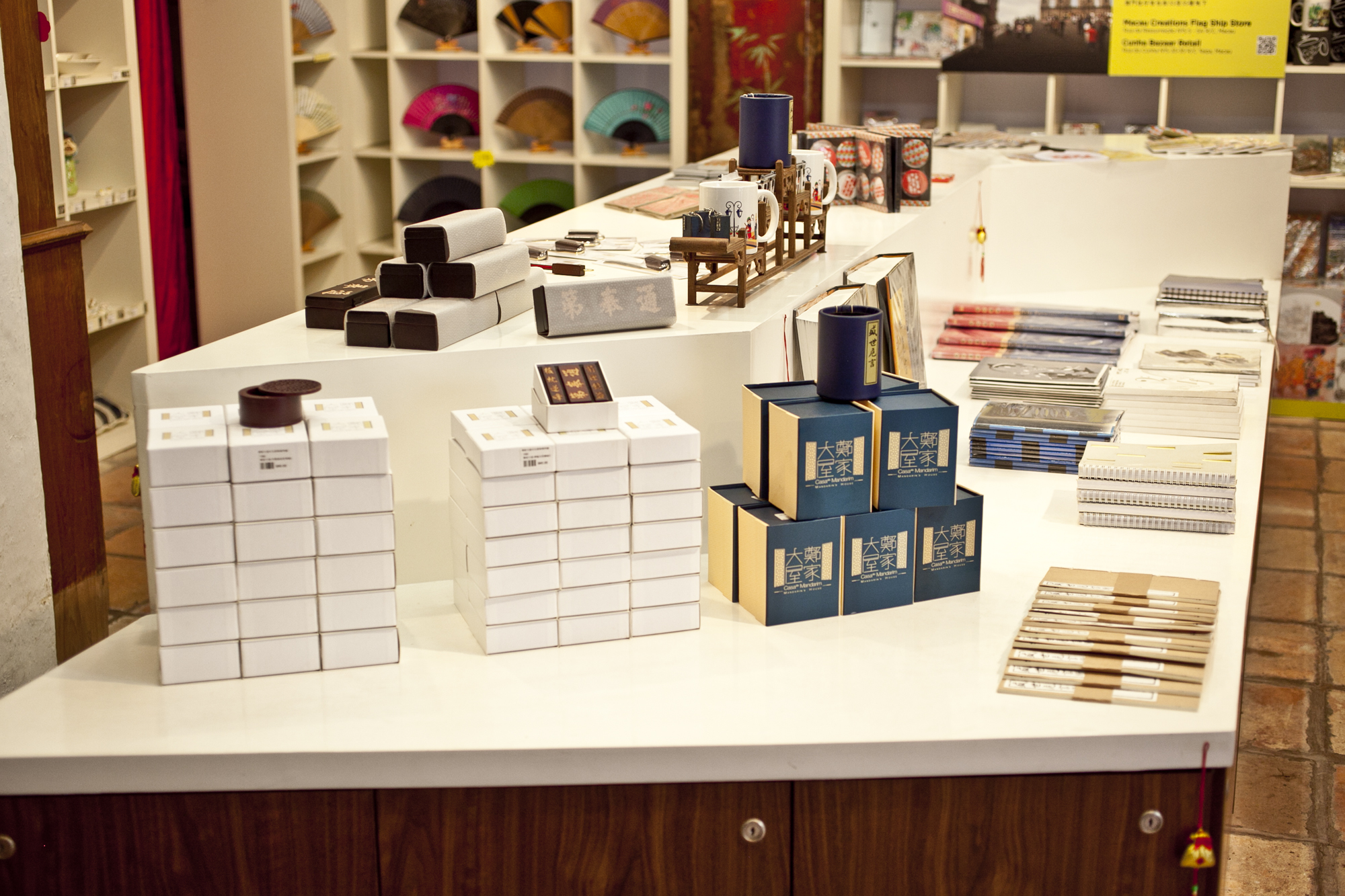 禮品店銷售產品多元,除有書籍出版類、流行音樂類及手藝創作類產品等外,同時設有“鄭家大屋”主題紀念品、鄭觀應書刊、文化局出版刊物及澳門世界遺產設計品。今年十九個駐店文創單位包括:南薰樓工藝社、澳門佳作有限公司、澳門天地陶藝學會、澳門文物大使協會、新成峰、澳門日報有限公司、澳門人文科學學會、澳門華夏文化產業協會、陳錦鑾、作曲家、作家及出版社協會、華語傳媒文化學會、夢想計劃協會、澳門佰家音樂有限公司、工匠創作空間、銀點子、黃玉娟、澳門手作及創意人協會、曾子青及鄺瑩瀅。