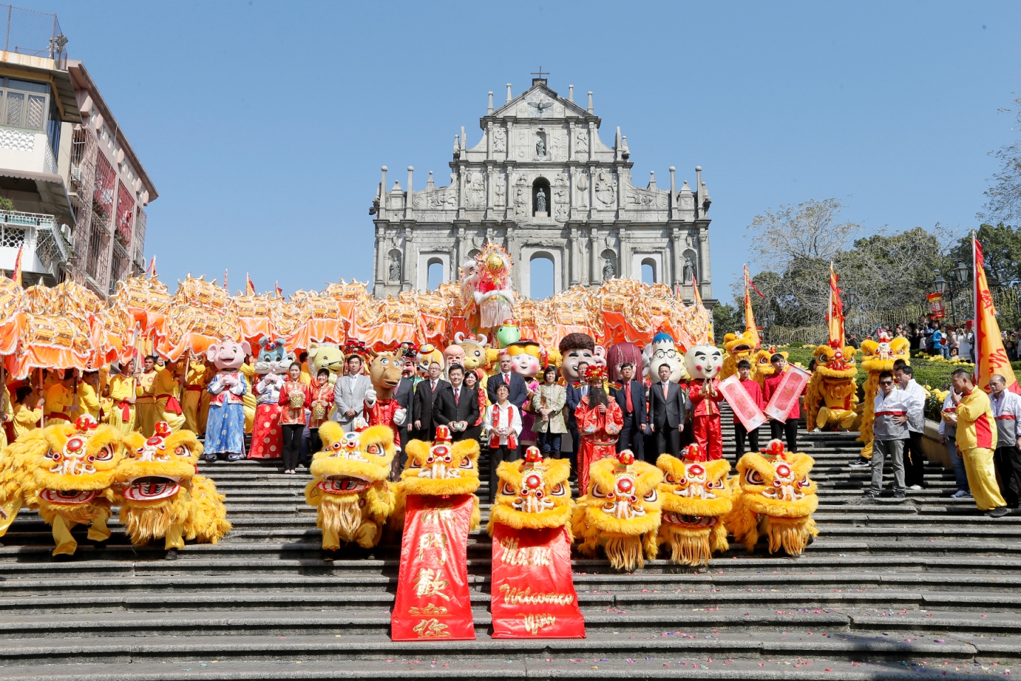 旅遊局聯同民政總署於農曆新年大年初一(31日)在大三巴牌坊廣場及議事亭前地舉行新春慶祝活動,與全澳市民及旅客歡度春節。