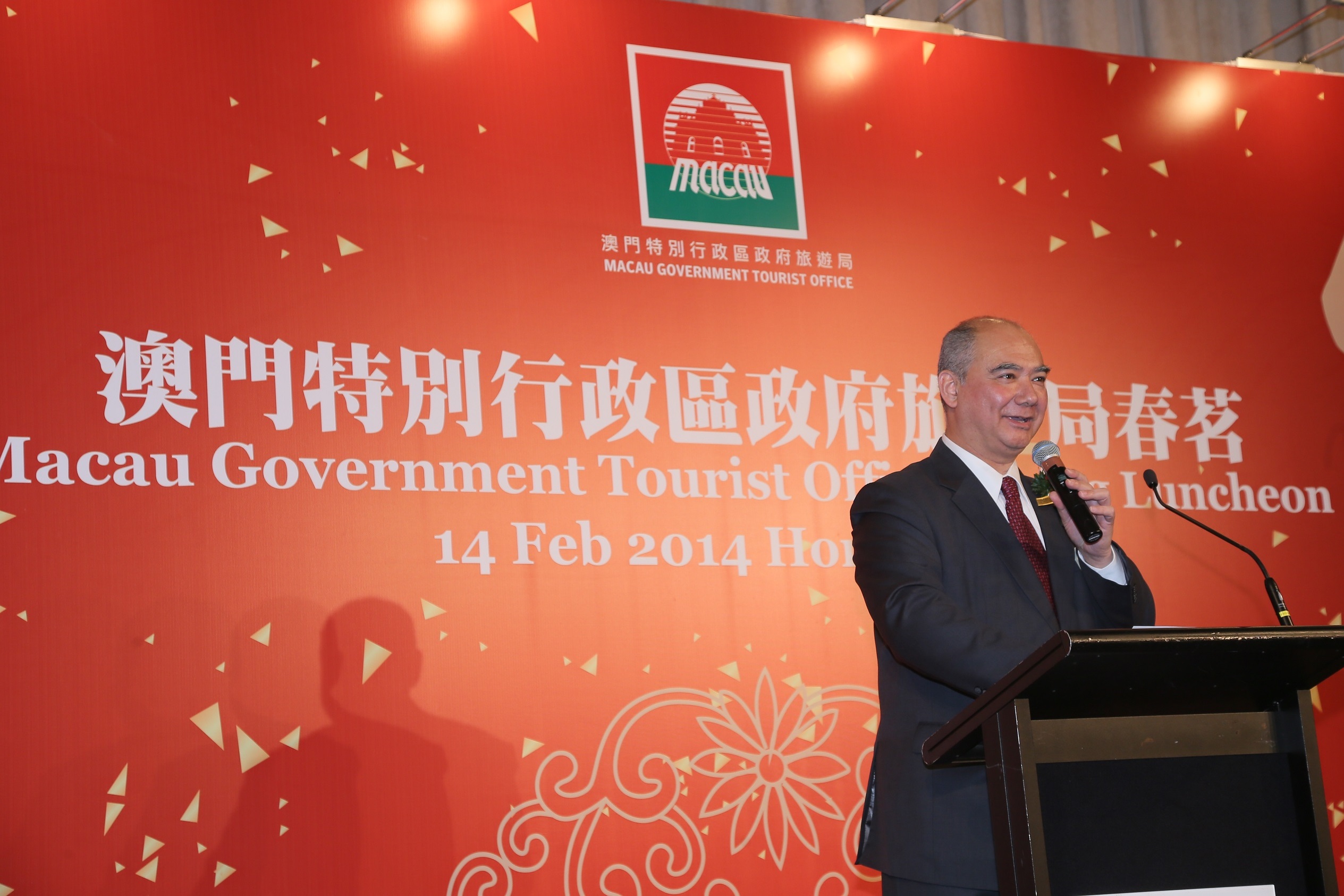 澳門特別行政區政府旅遊局於今午(14日)假香港唯港薈酒店舉行春茗,與香港旅遊業界、商界伙伴及傳媒朋友一同歡慶馬年的來臨,並答謝他們多年來對澳門旅遊業發展作出的努力及貢獻。