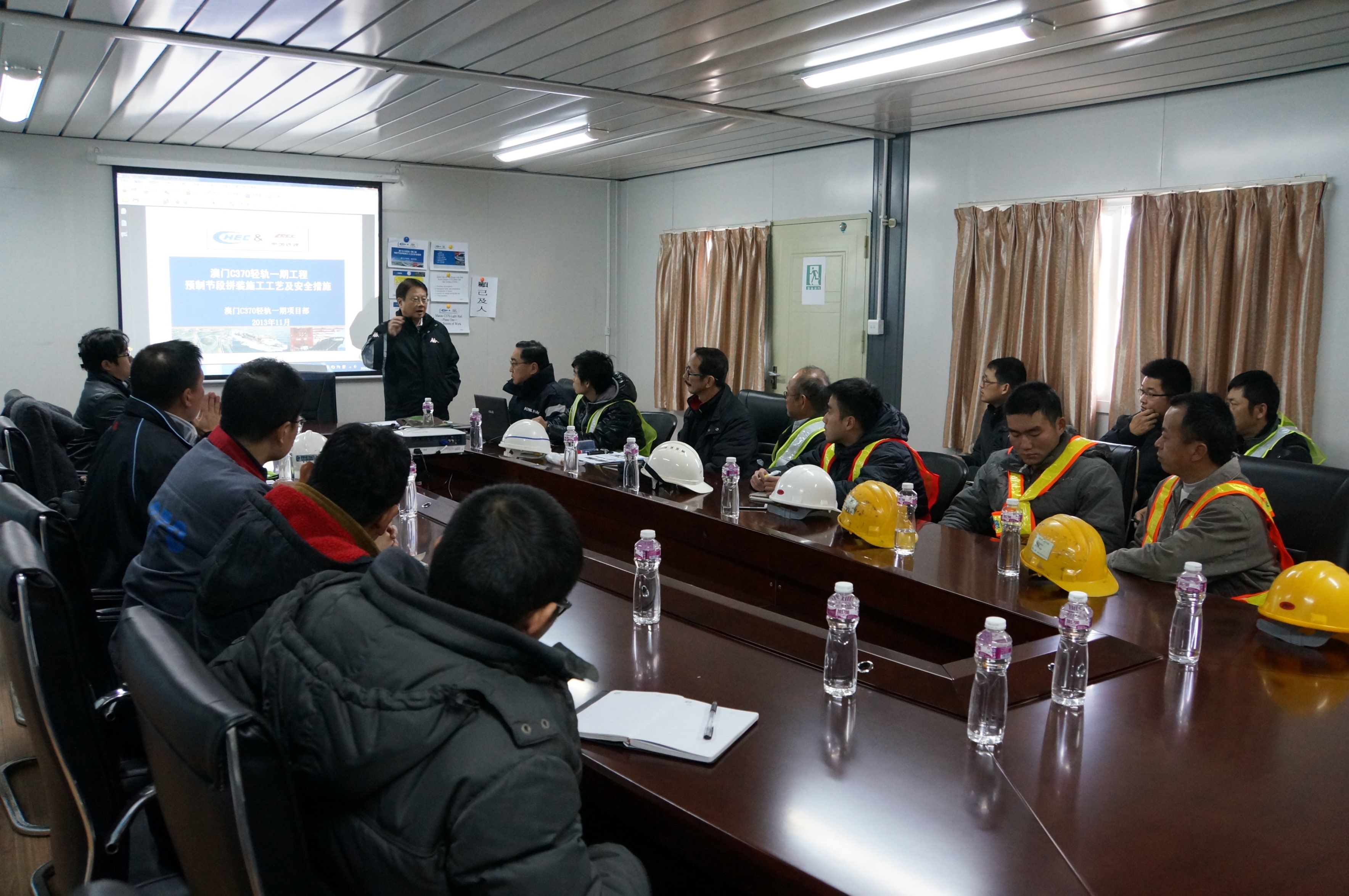 輕軌首段高架橋即將展開吊裝工作,早前施工單位為操作人員安排安全講解會,詳細解說整個工序的施工安排及安全事項,務求讓吊裝工作能安全和順利進行。