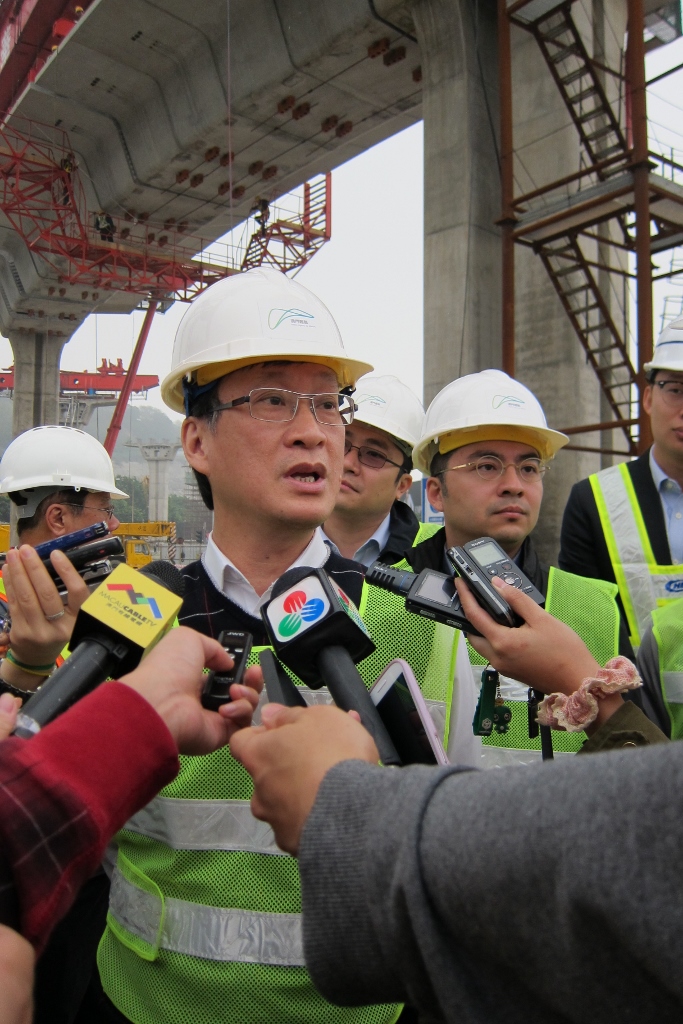 運輸基建辦公室主任李鎮東昨(12)日視察輕軌吊裝工地時表示,預製件吊裝工作啟動,標誌着輕軌建設邁向一個新里程。他特別要求施工單位必須嚴格遵從各項安全準則,做好事前協調工作,儘量減少施工期間的影響及保障公眾的安全;另外,由於天氣會為吊裝工作帶來嚴竣的挑戰,例如在雨季和颱風季節,施工會受影響,因此,運建辦要求施工單位密切留意天氣狀況,規劃並把握好施工時間。