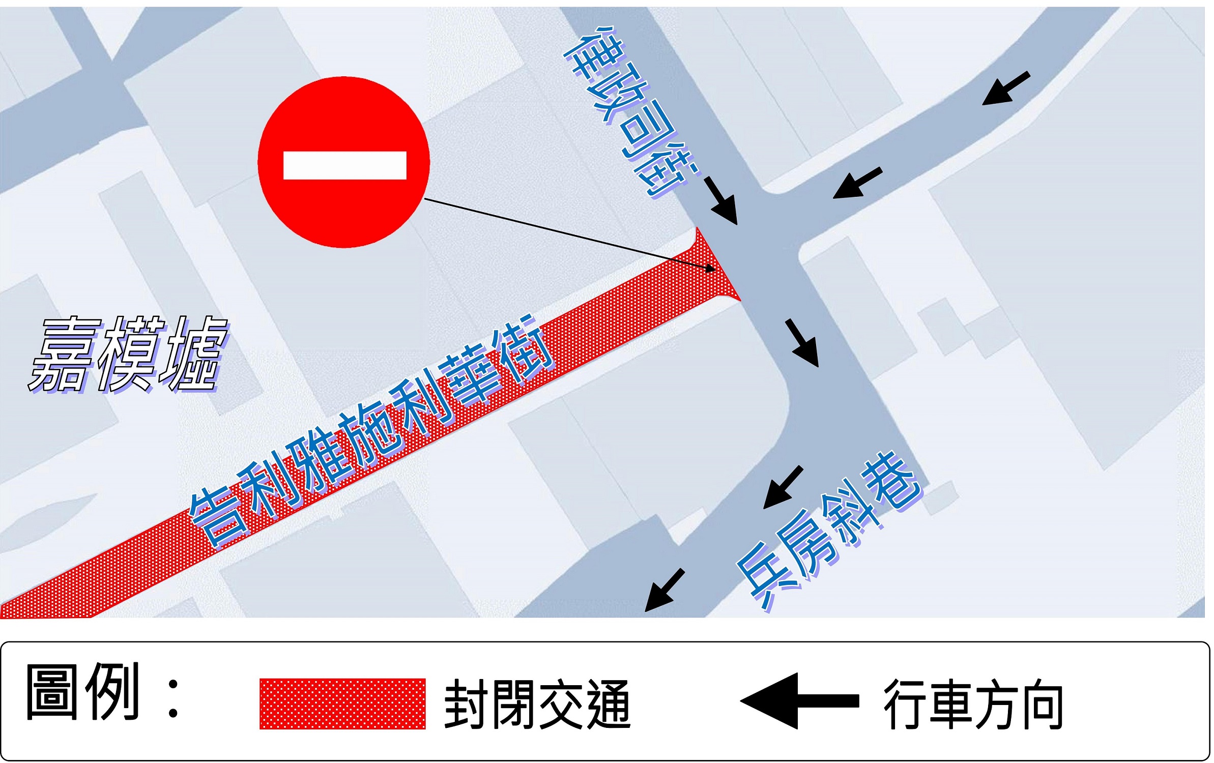 因進行電纜鋪設及穿線工程,介乎氹仔官也街與福隆巷之間的一段告利雅施利華街將於本月18日(周二)凌晨零時30分至6時實施封閉交通,並禁止車長超過5米之車輛駛入律政司街及飛能便度街。配合工程需要,近官也街的一段告利雅施利華街於本月19日(周三)至28日(周五)實施有限度通車,部份咪錶泊車位亦會暫停使用。