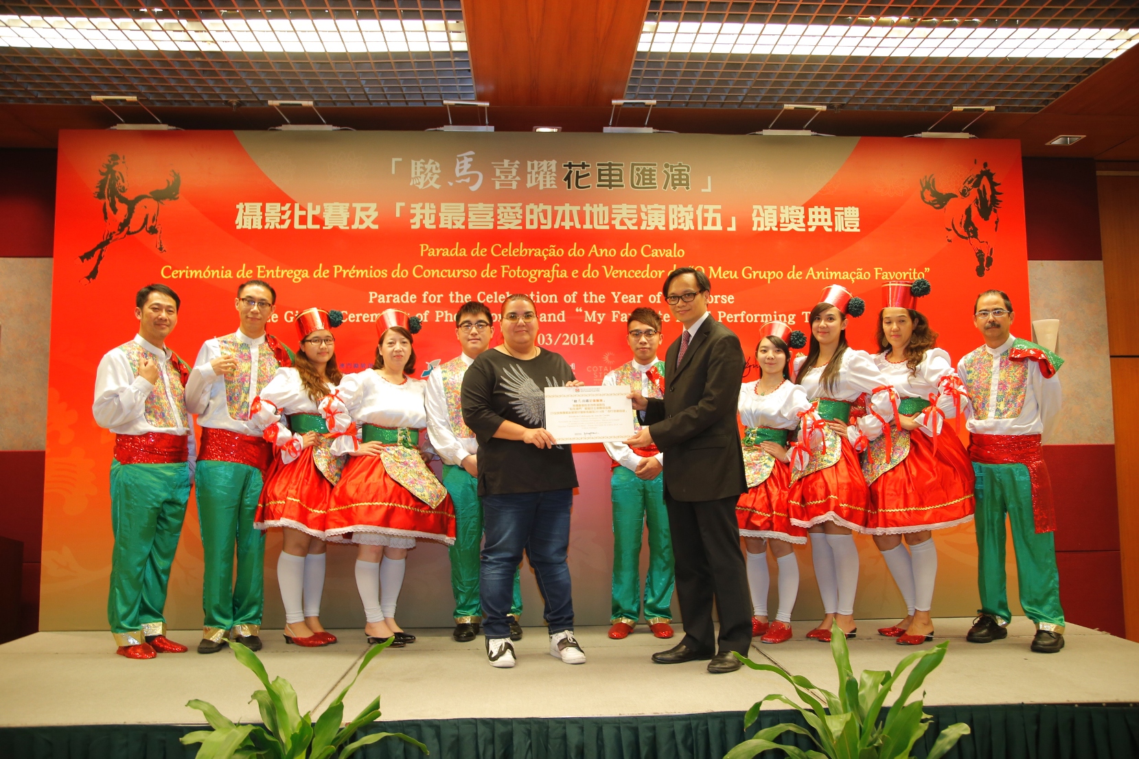“駿馬喜躍花車匯演” 攝影比賽及「我最喜愛的本地表演隊伍」頒獎典禮於今(18日)在澳門旅遊活動中心舉行。“心在澳門” 葡萄牙土風舞蹈團獲選「我最喜愛的本地表演隊伍」。
