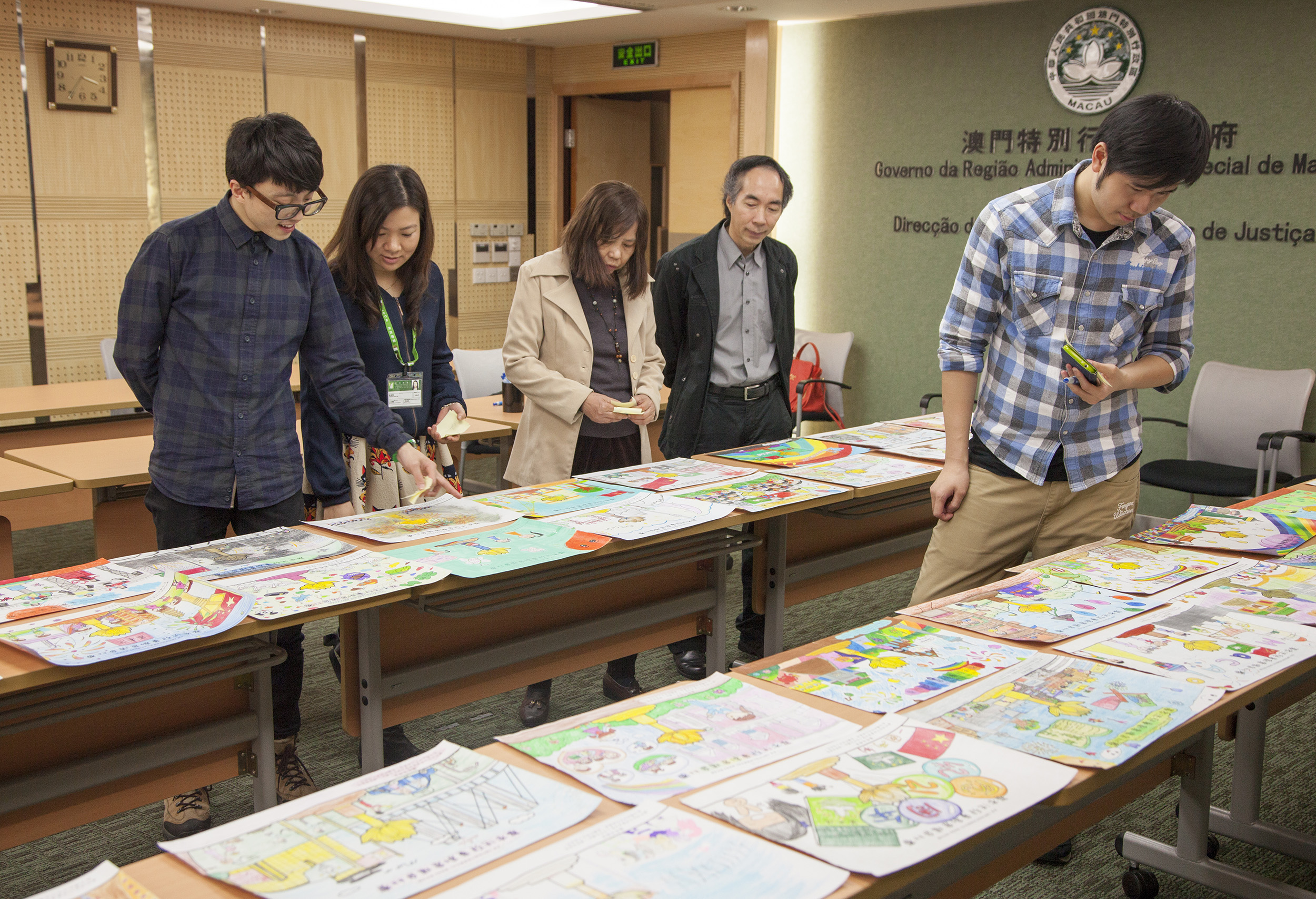 是次比賽除主辦單位評審外,亦特別邀請本澳著名美術專業人士共同擔任評審工作,包括:澳門美術協會潘錦霞秘書長、李惠華理事及黎小傑理事。評審們分別就參賽作品的主題、整體構圖及創作意念等方面進行評審,選出三組共四十五名得獎者。