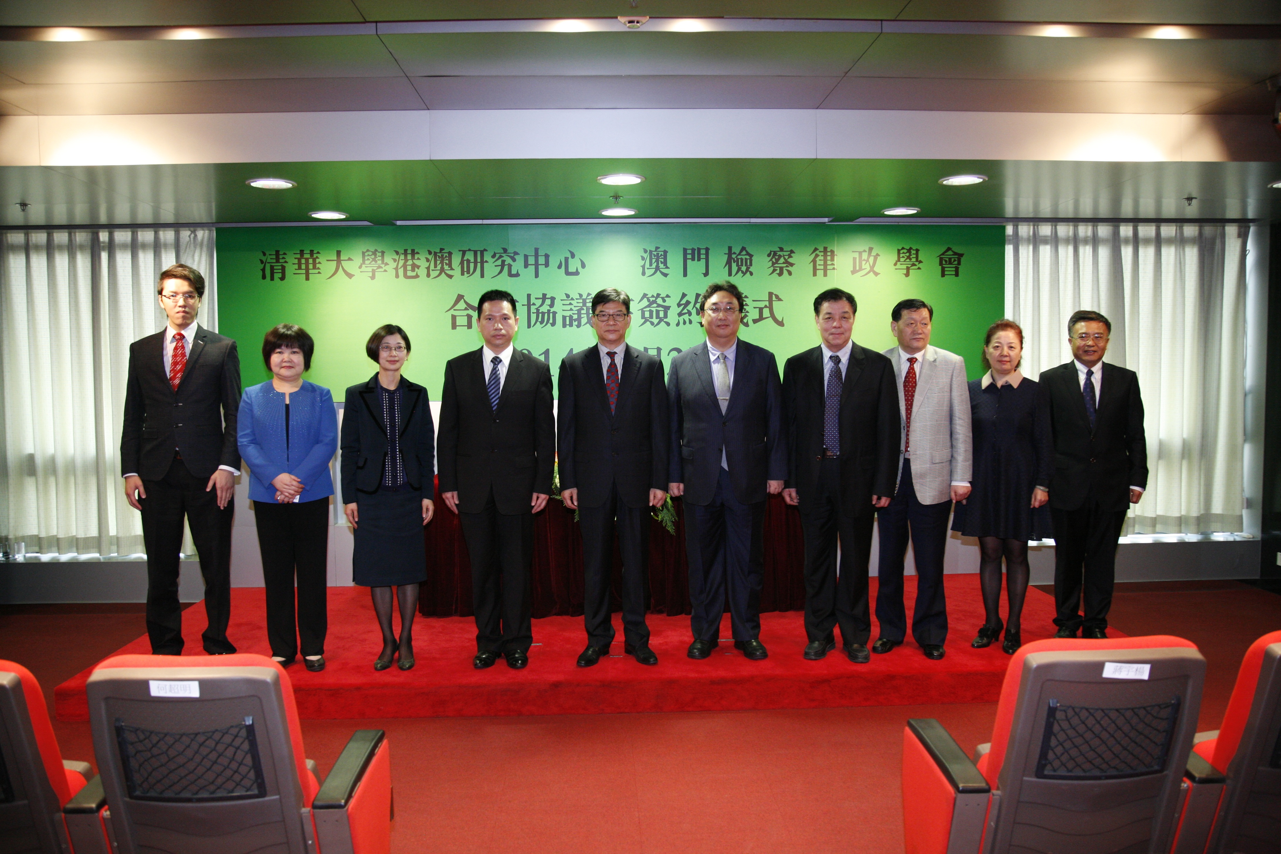 清華大學港澳研究中心與澳門檢察律政學會於三月二十七日在澳門檢察院總部多功能室簽署“清華大學研究中心與澳門檢察律政學會合作協議”,協議內容包括共同舉辦學術交流活動、開展課題研究、擴大人員交流、交換研究資料等,藉此進一步促進與深化雙方之間的交流與合作。
