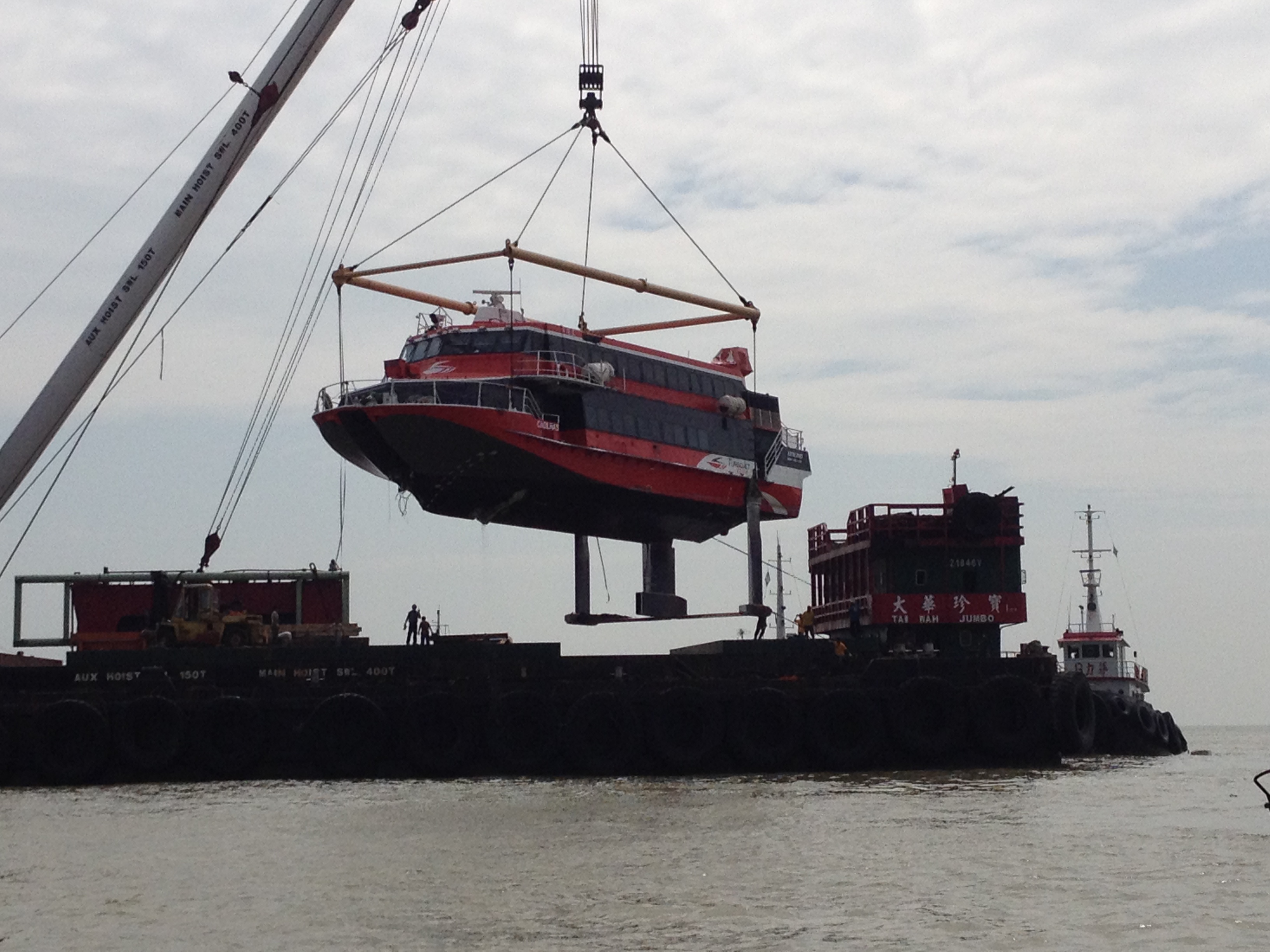 今日早上約8時至10時,船公司的起吊船隊在海事及水務局和海關的協助下,順利完成了擱淺客船起吊工作。起吊工作期間部分外港航道需要實施單向航行管制,而外港客運碼頭的航班則未有受到太大的影響。