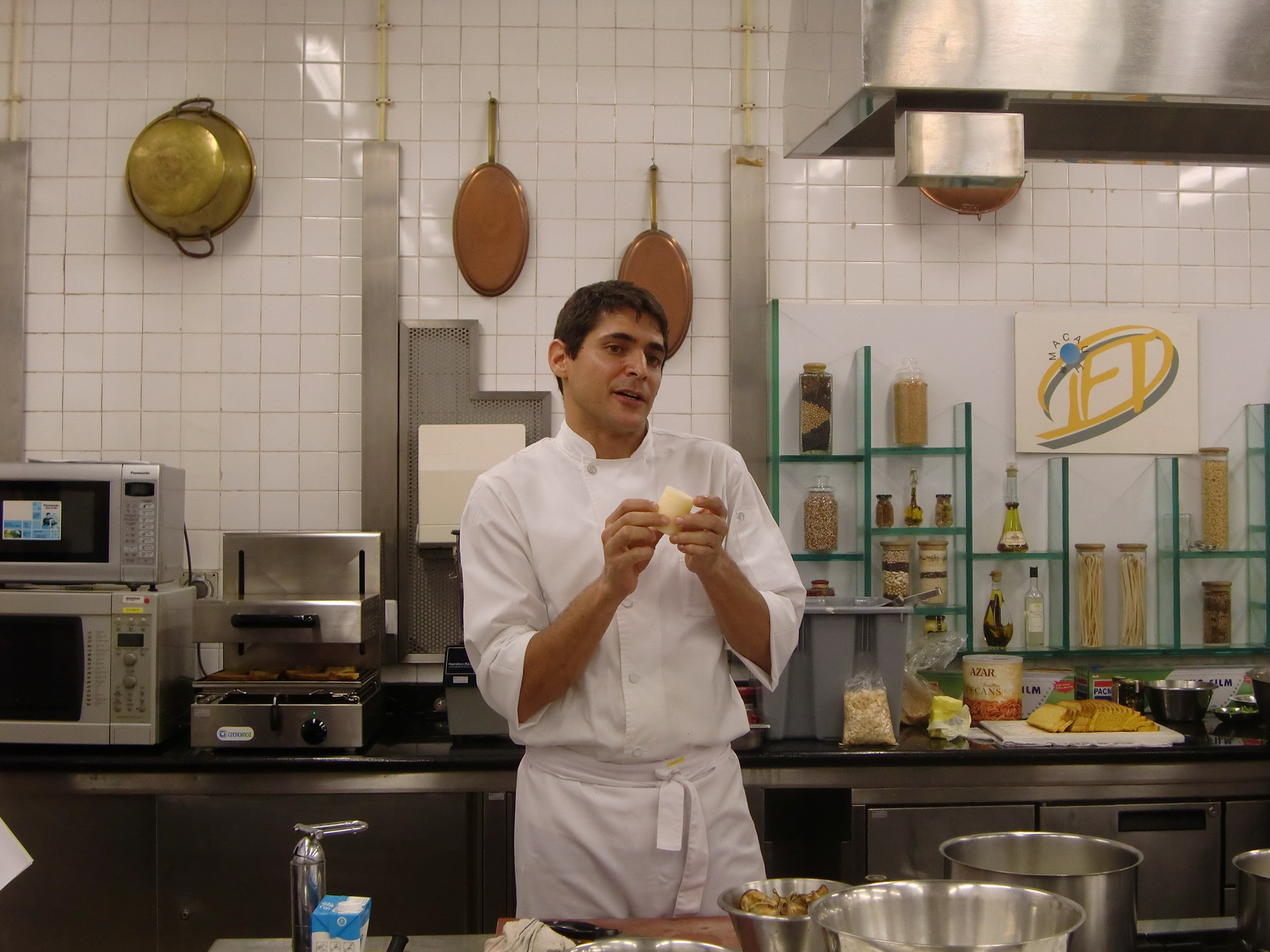Sebastian Jose Guevara擁有超過二十年的廚藝及餐飲管理經驗,曾於阿根廷、智利、香港及新加坡的知名餐廳任職主廚。Sebastian希望能透過各種烹飪課程、工作坊及烹飪示範,讓更多人認識到阿根廷美食。他亦樂於向年青廚師傳授手藝,培訓新一代接班人,發揚阿根廷的飲食文化。是次工作坊共分五個環節:食材介紹、食譜及準備工作展示、製作要點、製作示範、試食及問答環節。烹調展示的菜式包括:科卡西亞香草包伴蕃茄及饀料、扭繩牛柳伴骨髓薯仔配紅燈籠椒醬及阿根廷香草汁及香蕉合桃麵包布甸。是次工作坊共吸引了32名本澳酒店及餐廳的廚師參加。參加者除可獲得阿根廷菜的基礎知識,同時透過烹調展示了解烹調方法及整個製作過程。在食物的品嚐環節,參加者親自品嚐這些即席烹調的食物,深切體會阿根廷美食的滋味。