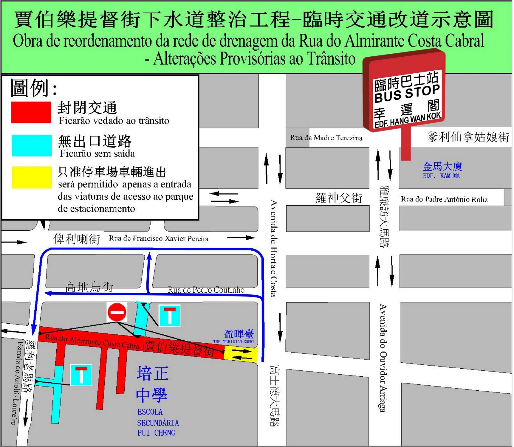 土地工務運輸局及交通事務局會繼續密切留意賈伯樂提督街下水道整治工程的實況,適時對施工及相關臨時交通安排作出調整,期望公眾能予以體諒和配合。兩局呼籲市民和駕駛者留意有關交通改動。如公眾對工程方面有任何查詢或意見,歡迎致電:8590 3800或電郵至info@dssopt.gov.mo;交通方面則可致電:8866 6363或電郵至info@dsat.gov.mo。