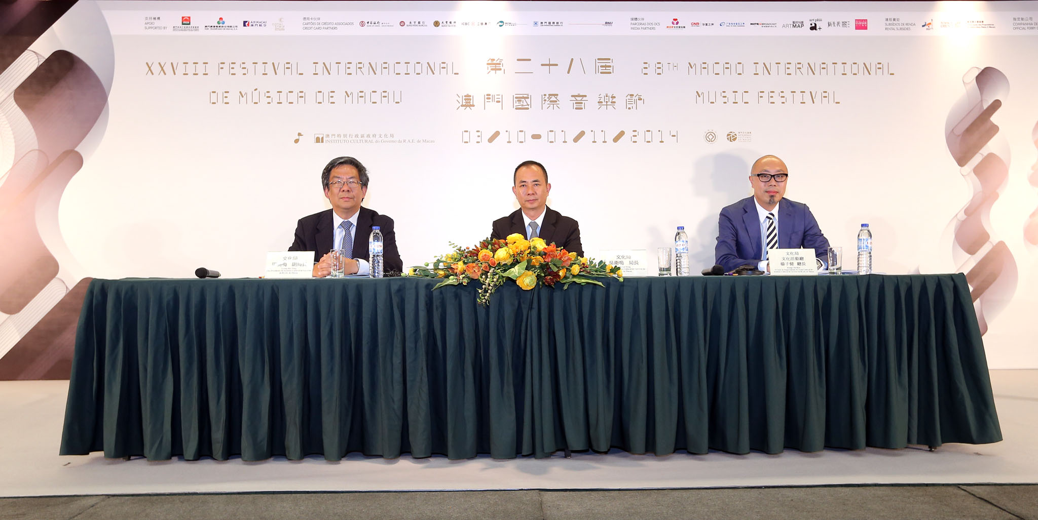 第二十八屆澳門國際音樂節新聞發佈會於今天(七月二十二日)下午三時假新口岸旅遊活動中心舉行,文化局局長吳衛鳴、本屆音樂節支持單位旅遊局代局長程衛東、澳門廣播電視股份有限公司董事暨執行委員會委員黎奕豪、澳門航空市場銷售部總經理葛嵐、金光大道度假區代表及威尼斯人澳門股份有限公司公共關係及社會事務高級副總裁梁小牧、文化局副局長梁曉鳴與文化活動廳廳長楊子健出席。