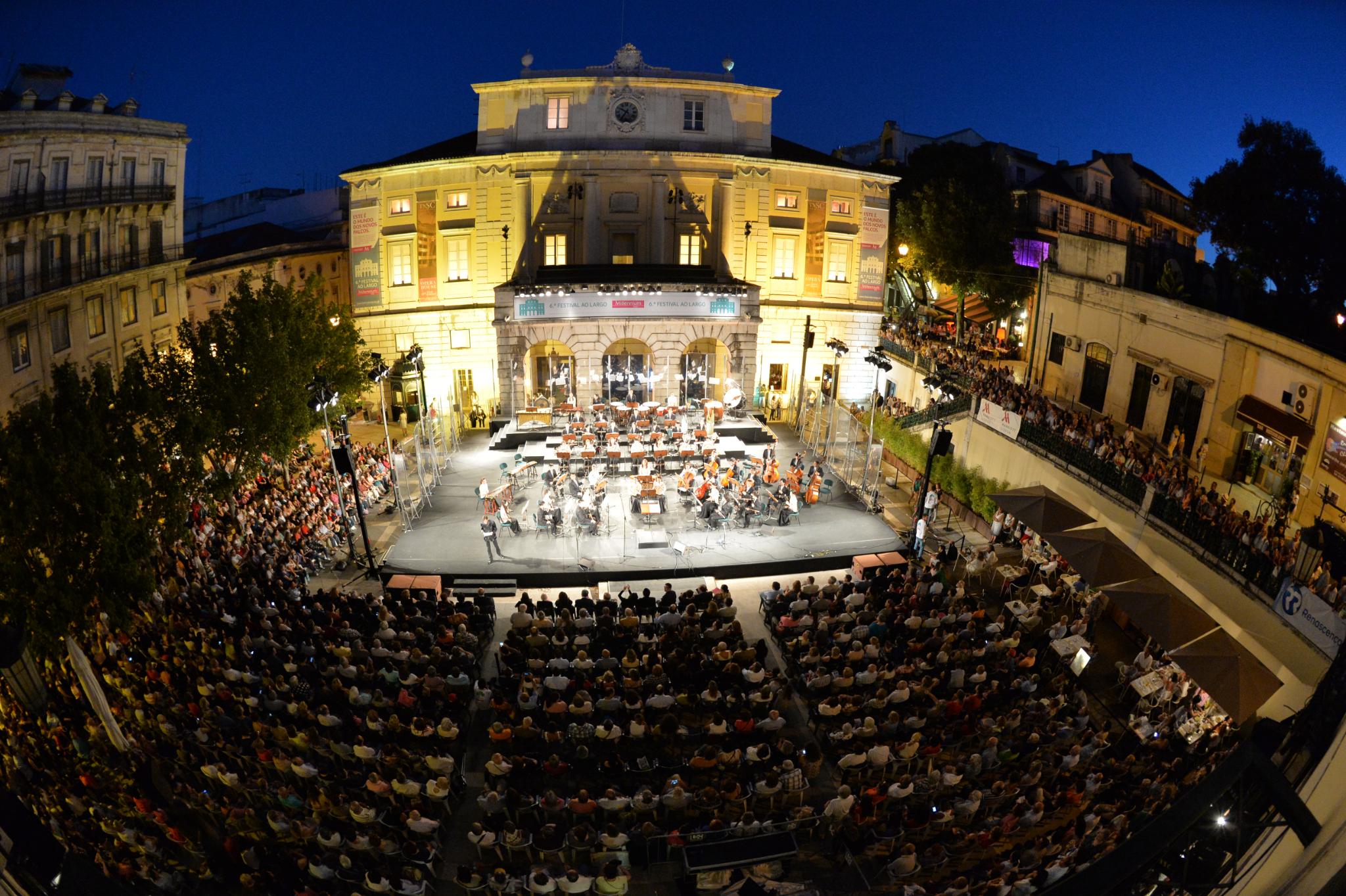 首場音樂會為“里斯本廣場音樂節”演出,於葡萄牙首都里斯本具有二百多年歷史的聖加路士國家劇院廣場戶外獻演。演出當晚,文化局設宴招待里斯本主要嘉賓;隨後,中華人民共和國駐葡萄牙大使館文化處參贊舒建平、文化局副局長姚京明、社會文化司司長辦公室顧問盧綺莎、澳門國際研究所主席黎祖智、葡萄牙聯合國教科文組織全國委員會秘書長麗塔‧巴斯‧布里托、聖加路士國家劇院總監、一九八七至一九九一年澳門國際音樂節藝術總監阿德里亞諾‧若爾丹、澳門駐里斯本經濟貿易辦事處副主任薛凱絲、澳門駐葡萄牙旅遊推廣暨諮詢中心協調員霍天樂、首任澳門文化學會會長若昂.加馮、前澳門文化司署司長布嘉麗、前澳門文化司署副司長依查烏.山度士、第一屆澳門藝術節籌備委員會主席蘇安廉、澳門科學及文化中心博物館主任瑞‧丹塔斯,以及過往文化局在葡同事一同出席觀賞音樂會。當晚逾一千五百名樂迷觀看演出,部分樂迷更在下午時分已提早到場覓座。中樂團在指揮彭家鵬的帶領下,獻上多首動人音韻,尾段由中樂團與葡萄牙著名“法多”演唱家瑪莉亞.安娜.保邦尼同台獻演,其亮麗嗓音與中樂配合得天衣無縫,現場觀眾連聲和唱。尾聲時中樂團兩度加演,獲全體觀眾激動站立鼓掌,把氣氛推至高峰。