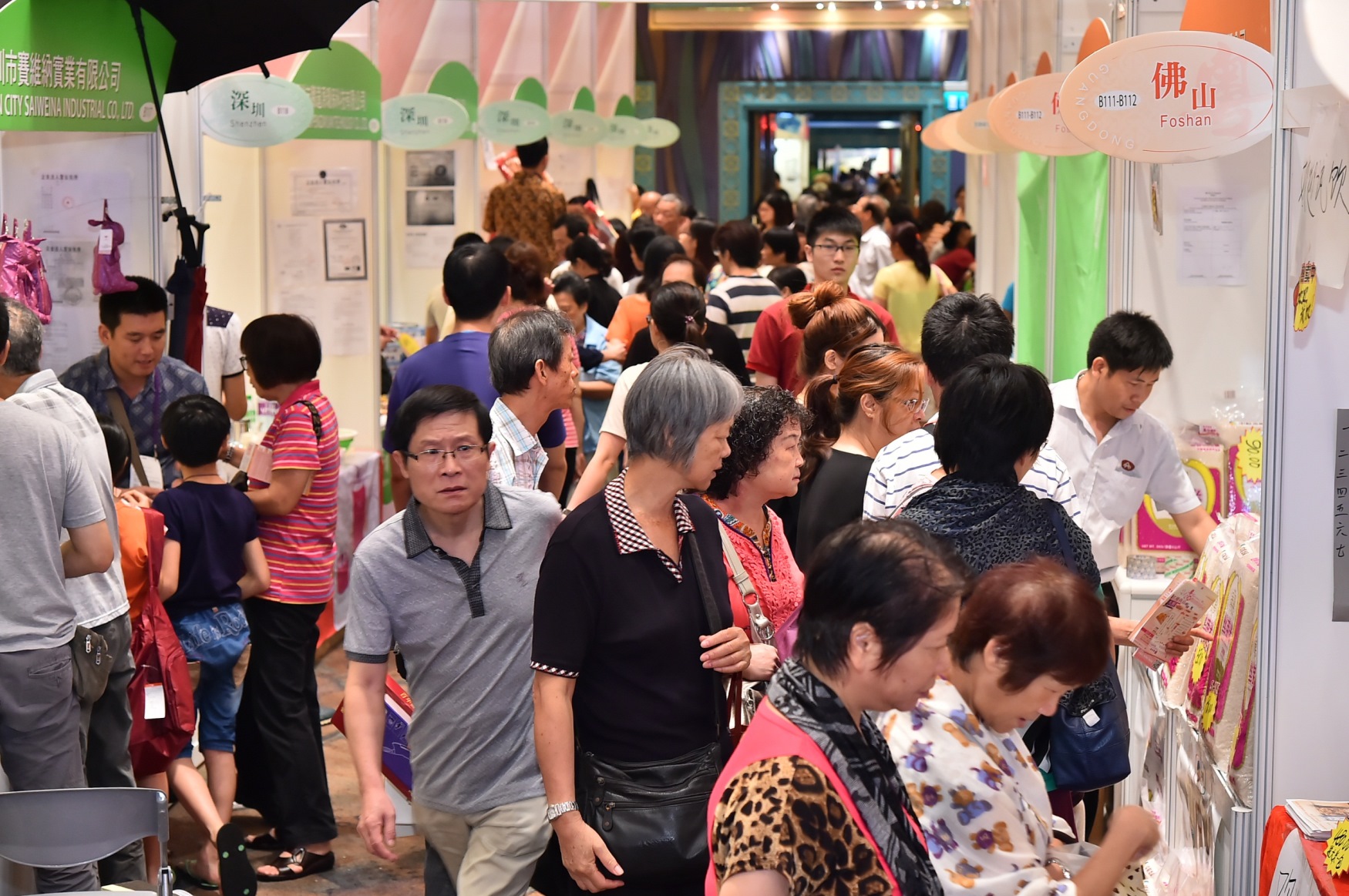 今年共設284個展位,展位數目比去年略為增加,展場面積約為6000平方米,主要分為廣東展銷區及澳門展銷區兩大部分。一如以往,假日入場人數特別多,市民和遊客都把握機會掃平貨,參展商們皆各出奇謀吸引顧客購物。連續三年參展的廣東醬料參展商表示,澳門居民消費力強,由於去年成績理想,故今年帶來逾百箱貨品來澳參展,銷情同樣佳,預計貨品很快可售罄。而售賣紫砂煲的參展商表示,今年是首次參展,參展目的是測試澳門市場反應,為進駐澳門市場而舖路,同時亦期望透過展銷會找到與澳門企業合作的機會。
