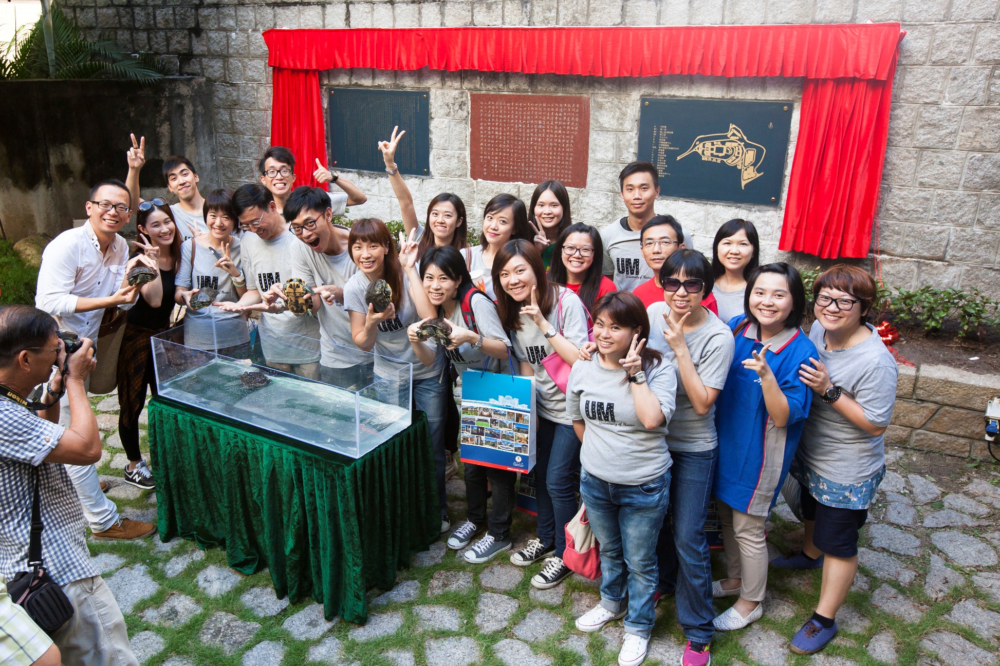 儀式上,林金城、謝志偉、黃景強、周禮杲、姚偉彬和趙偉共同為鑲嵌於舊校園大豐樓花園的紀念澳大校園發展的兩面牌匾──“搬遷史”和“新、舊校園平面圖”揭牌, 新的牌匾“搬遷史”由謝志偉博士撰寫,介紹澳大的發展歷史,當中包括由私立東亞大學改名為澳門大學、重組校董會和修章的歷程、澳大獲得中央撥地興建新校園,以及新校園對澳門高等教育發展所起到重要作用等;而使用澳大藍色、金色勾勒的“新、舊校園平面圖”就呈現了新、舊校園平面圖的對比。另外,儀式上還安排遷龜環節,主禮嘉賓從學生手中接過在舊校園龜池內飼養多年的巴西龜,放到箱內交給飼養員帶到新校園,象徵著澳大遷校工作完成,全校上下一心同歸,共創更多輝煌的美好願望。