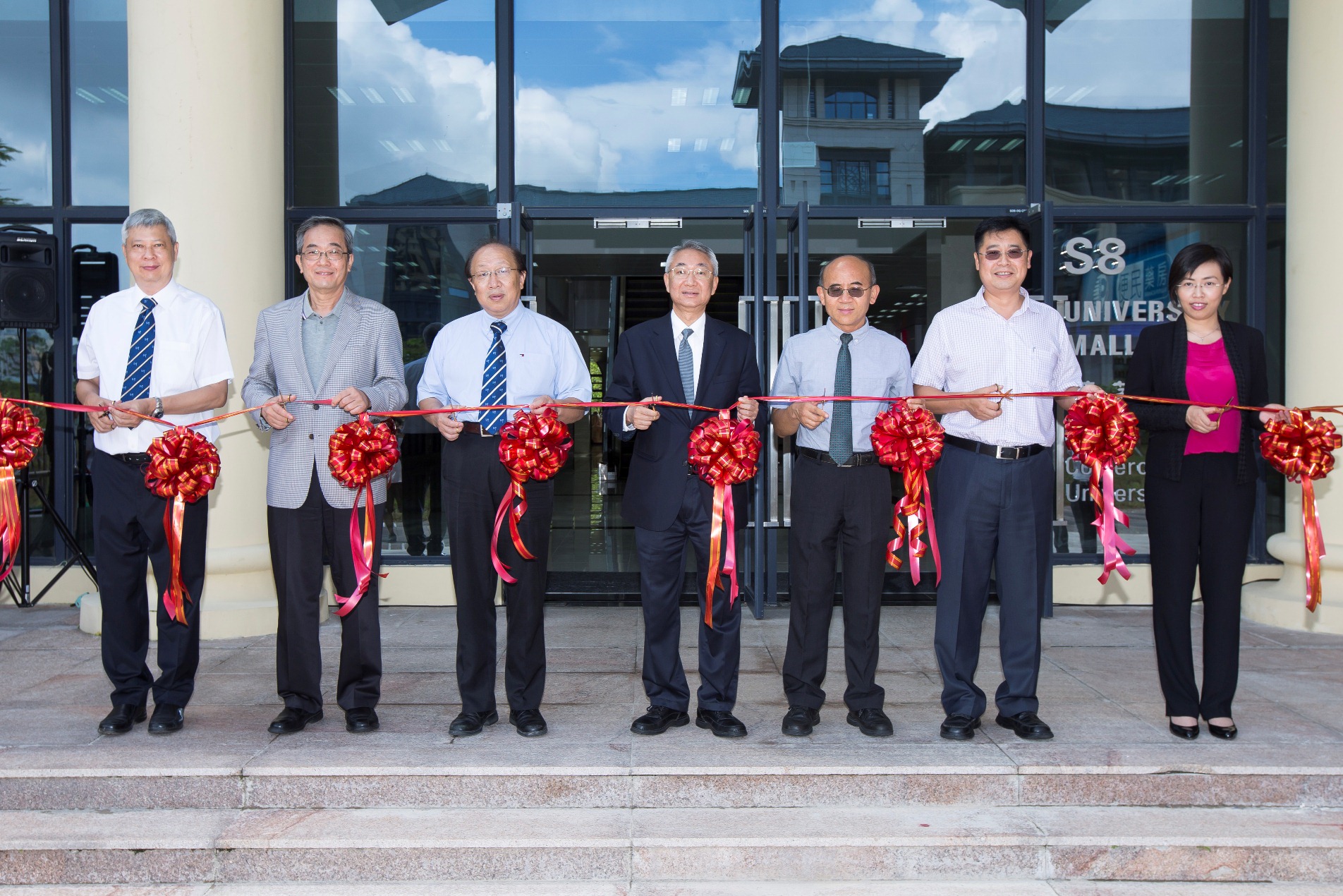 澳大校董會主席林金城博士、校長趙偉教授、代副校長(學術)范息濤教授、副校長(學生事務)程海東教授、副校長(行政事務)黎日隆博士等擔任嘉賓,為薈萃坊開幕剪綵,其後參觀薈萃坊,了解店鋪的運作和師生的使用情況。
