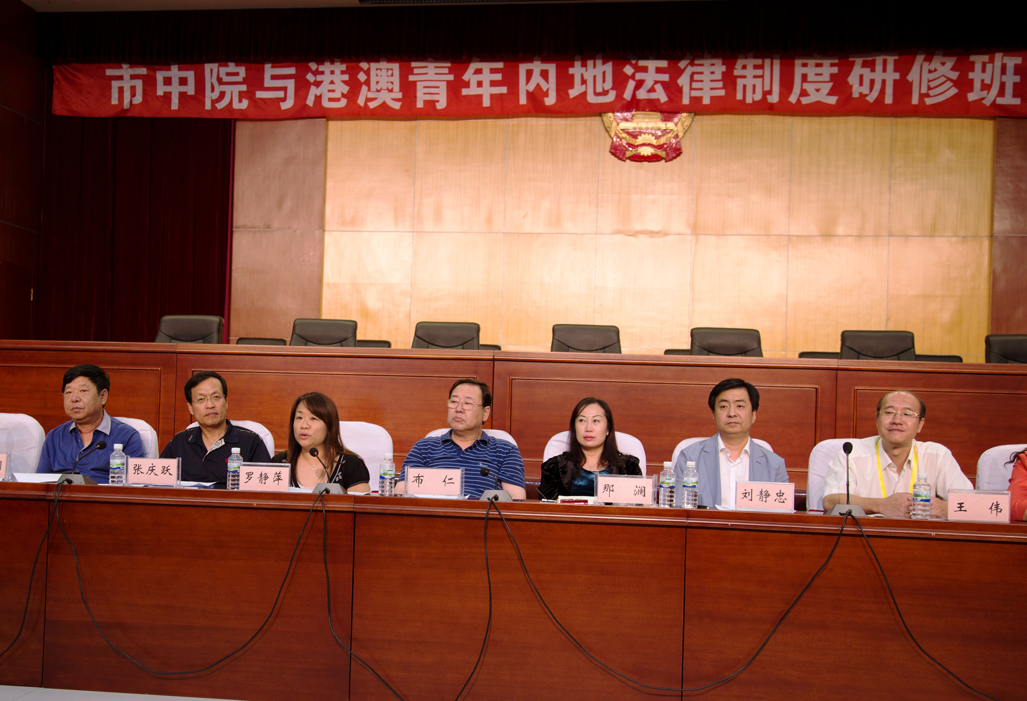 “2014年港澳青年內地法律制度研修班”由中國法學會及共青團中央共同主辦,司法部及教育部協辦,並由澳門法務局組織本澳的優秀法律學生參與,目的加強港澳青年對內地法制的認識及瞭解,其意義及影響深遠。為重視活動並對研修班的支持,全國政協副主席、中國人民銀行行長周小川出席了在人民大會堂舉行的開班儀式並發表講話,鼓勵同學們多認識祖國多瞭解祖國的發展,出席的還有中國法學會會長王樂泉,以及司法部和教育部的領導,法務局局長張永春率領澳門團出席,澳門代表團還包括法務局法律推廣廳廳長羅靜萍、澳門大學法學院中文法學士學位課程主任邱庭彪副教授、澳門科技大學法學院趙琳琳副教授、兩所大學的優秀法律學生以及法務局普法動力義工等合共五十五人。