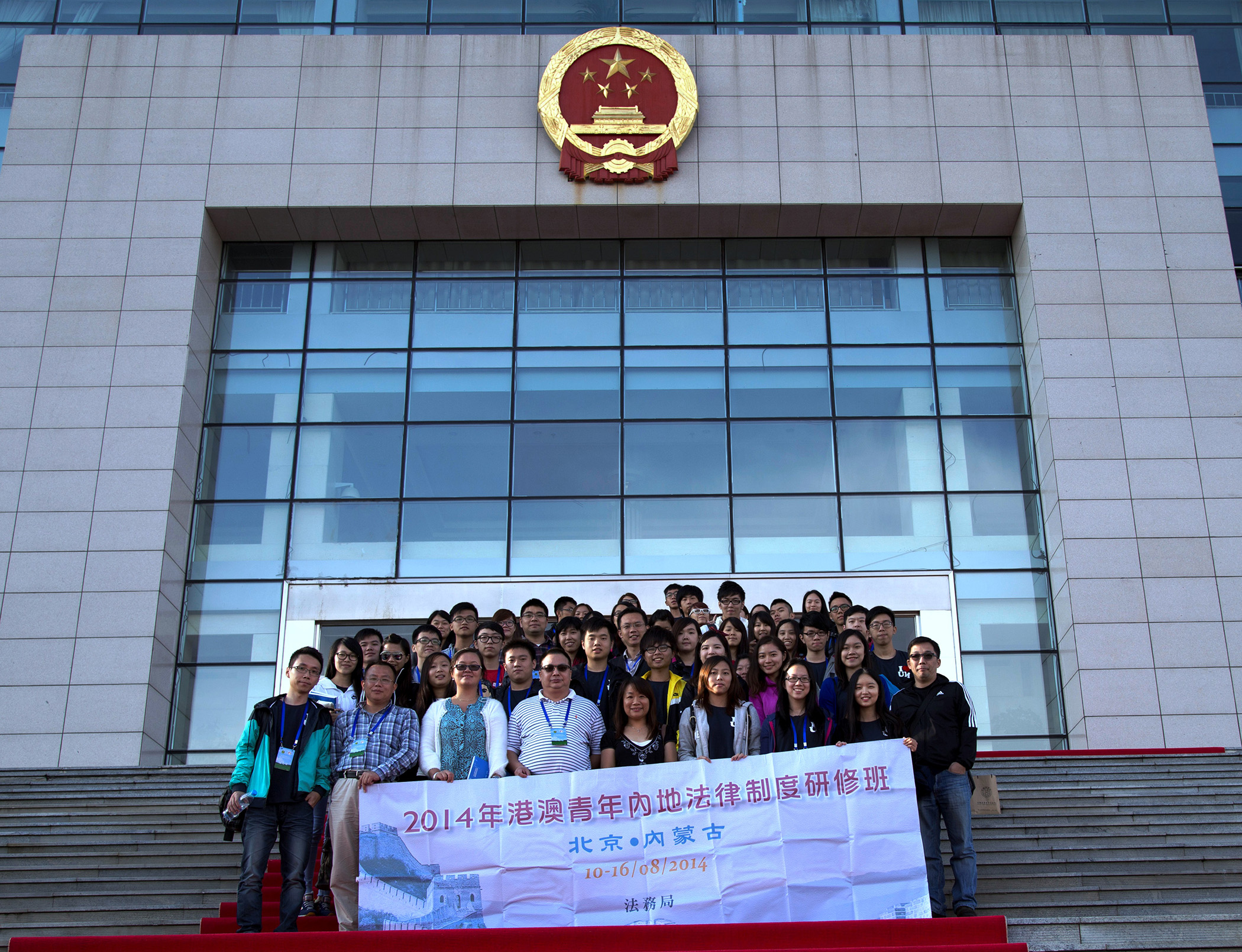 由中國法學會主辦,法務局組織參與的“2014年港澳青年內地法律制度研修班”於八月十日至十六日在北京及內蒙古舉行。澳門的優秀法律學生聯同香港青年律師及在讀法律學生,在北京參觀了人民大會堂,得到全國政協副主席周小川及相關領導人的接見。研修班還到訪了清華大學及內蒙古呼倫貝爾中級人民法院等,透過專題講座及座談,加深了學生們對內地法律制度的認識和瞭解,深化了對“一國兩制”的認識,行程獲得豐碩成果,同學們可謂滿載而歸。