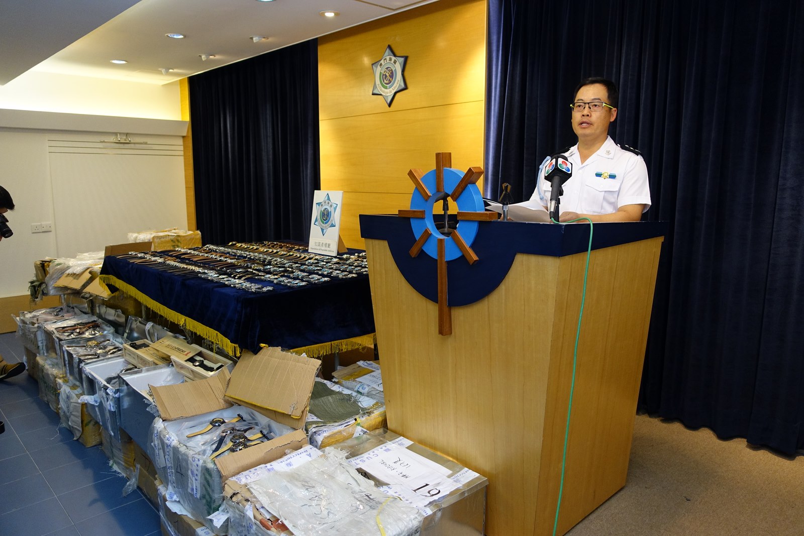 於八月二十六日,澳門海關口岸監察廳國際機場海關站稽查人員,在機場貨運站檢查一批由內地經路氹新城海關站進入本澳再轉運往外國的轉口貨物時,海關站人員發現除了轉運申報單上所報稱的貨物之外,還有三十四箱貨物沒有申報,而負責運送該批貨物的物流公司人員在報關時報稱該批貨物為五金製品、塑料製品、電腦配件、燈具配件及服裝輔料。經海關站人員詳細檢查後,發現該三十四箱没有申報之貨物實為大量著名品牌手錶,明顯與申報單內容不符。口岸監察廳遂聯同知識產權廳作進一步聯合偵查,發現該批手錶涉及多個品牌,總數高達五千多隻,其中十七個品牌已在澳門經濟局註冊,經品牌鑑定人進行核查後,初步證實為假冒名牌手錶。該批貨物若以市場價值計算,總額超過二千萬澳門元。
