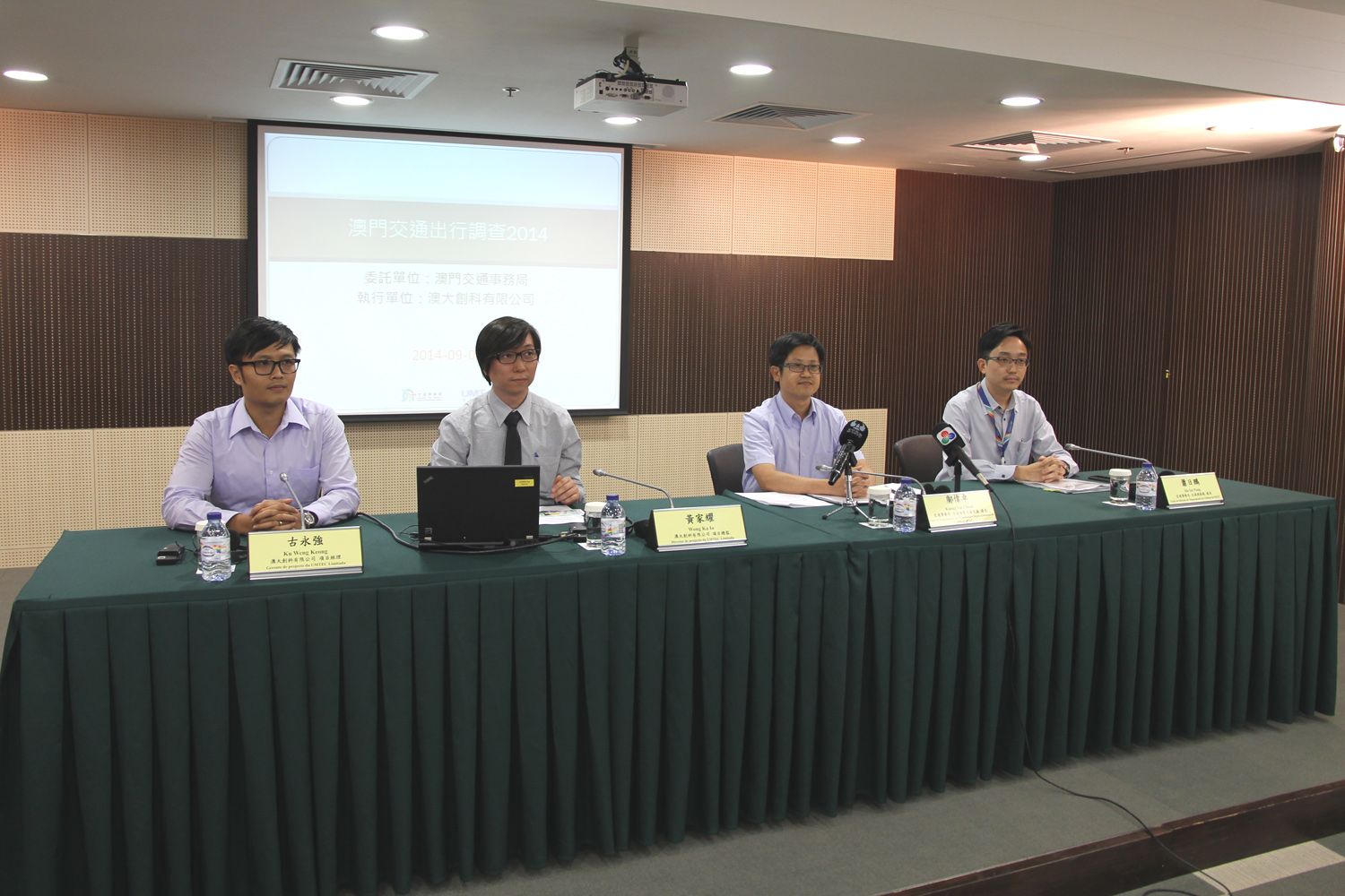 交通事務局交通規劃及建設廳廳長鄺偉卓、交通規劃處處長蕭日鵬、澳大創科有限公司項目總監黃家耀、項目經理古永強今日(5日)於交通事務局多功能會議室舉行新聞發佈會,介紹是次入戶調查詳情。