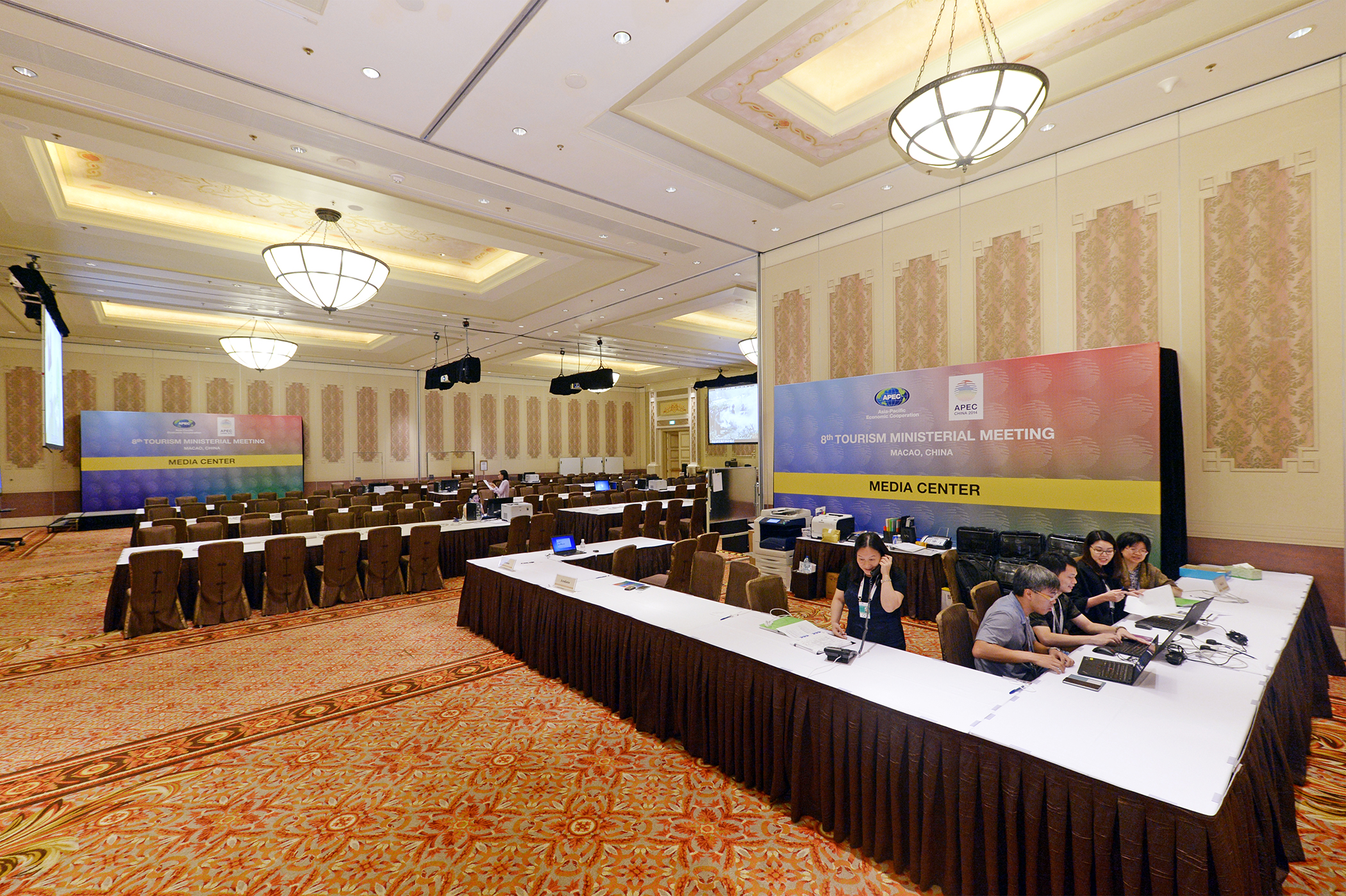 第八屆APEC旅遊部長會議吸引來自10個國家和地區的63個新聞機構共300名傳媒代表報名,大會設立的傳媒中心位於路氹金光大道澳門金沙城康萊德會議中心。內設有160個工作座位供記者使用。新聞中心設有傳媒發佈專區和訪談室,供媒體使用。