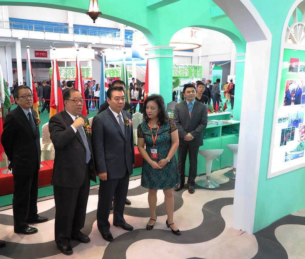 9月19日早上, 澳門經濟財政司譚伯源司長丶 遼寧省邴志剛副省長丶 中央人民政府駐澳門特別行政區聯絡辦公室姚堅副主任 丶中聯辦經濟部王新東部長丶 中葡論壇(澳門)常設秘書處常和喜秘書長丶韋尚德副秘書長(葡語國家指派)丶姍桃絲副秘書長(澳門特區政府指派)丶 澳門旅遊局文綺華局長丶 澳門貿易投資促進局張祖榮主席以及澳門經濟局戴建業代局長等到“葡語國家館”合影參觀。