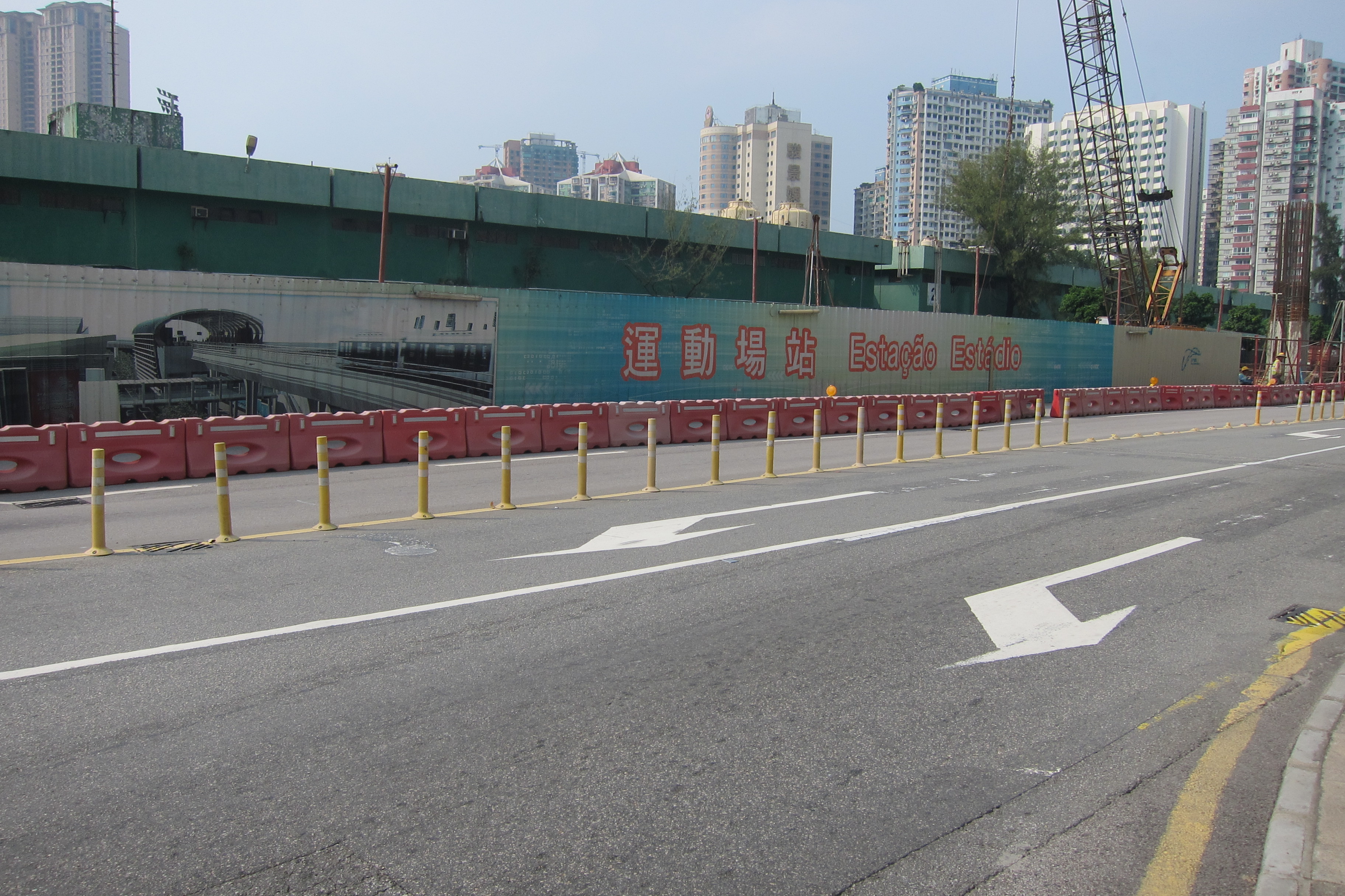 隨著輕軌氹仔線進入車站建設階段,部份施工範圍需進一步拓展,以開展車站的結構施工。其中,在開展「運動場站」結構施工前,考慮到運動場道屬氹仔主要交通幹道,為此,施工單位早前以試行圍封的方式進行交通量測試,以統計開學前後的車流變化,在進行兩次的測試結果顯示,高峰時段該路段的行車狀況順暢。有見及此,經與交通部門協調後,施工單位將由明(25日)起調整車站的圍封位置,屆時,氹仔奧林匹克游泳館圓形地往運動場圓形地方向的一段運動場道將改為單線行車,為期約半年至九個月。