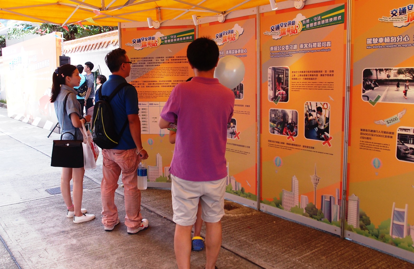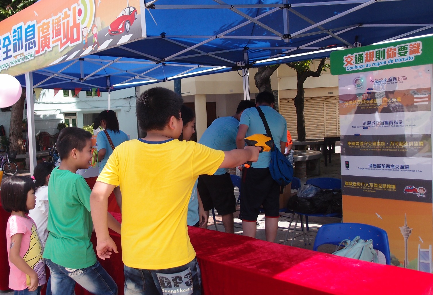 為讓廣大道路使用者明白到自身行為對道路交通安全的影響,認真意識到交通安全人人有責,並從自身做起,共建安全的交通環境。交通事務局推出以“有禮∙守法,做個盡責道路使用者”為題的 “交通安全訊息廣播站”活動,自6月起,活動已先後在二嚨喉公園、三盞燈圓形地休憩區、白鴿巢公園、祐漢新村第四街休憩區、氹仔花城公園側空地、氹仔嘉妹前地及氹仔運動場圓形地舉行,不少市民一家大細、扶老攜幼到場參加,齊齊通過輕鬆有趣的形式,學習正確的交通知識。