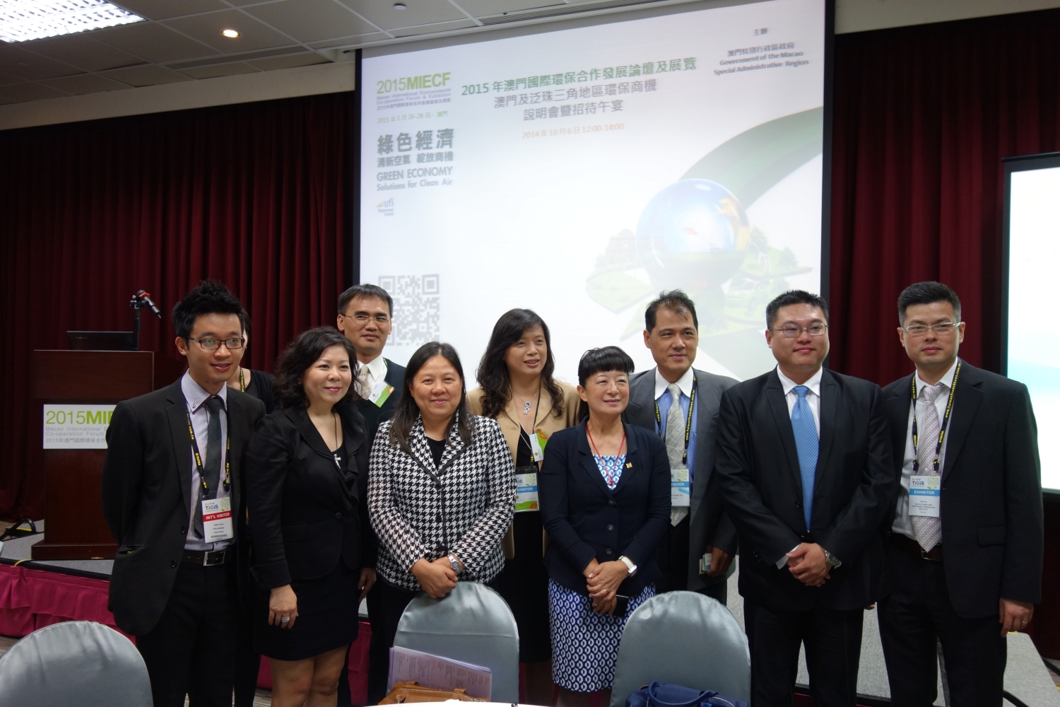 為宣傳推廣「2015年澳門國際環保合作發展論壇及展覽」(2015MIECF),由澳門貿易投資促進局及環境保護局共同主辦之2015 MIECF「綠色經濟──清新空氣 綻放商機」澳門環保商機說明會暨招待午宴(台北)已於2014年10月6日假台北世界貿易中心南港展覽館4樓會議室舉行。會上由貿促局劉關華執行委員及環境保護局黃蔓葒副局長分別致辭;同時,2015MIECF項目經理–科隆國際展覽有限公司代表介紹2015MIECF之活動概況及參展參會配套安排。