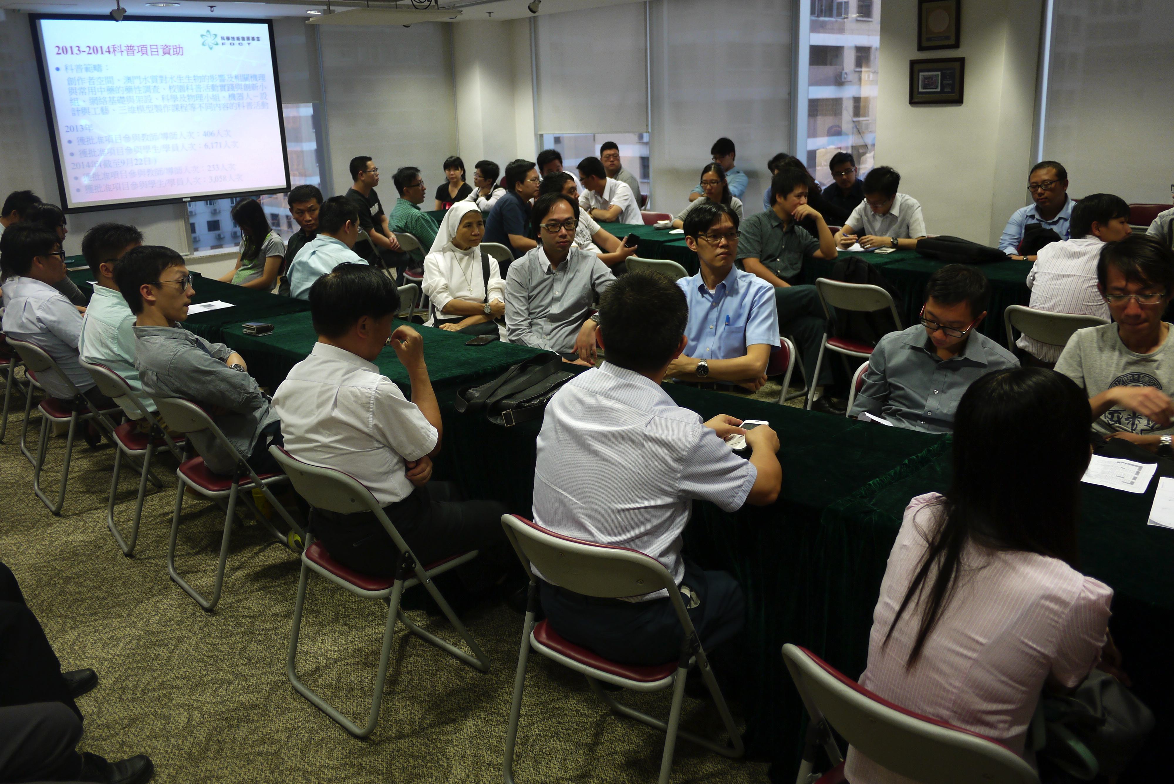澳門科學技術發展基金於10月13日分別舉行了兩場科研與科普資助座談會,邀請了本澳多間大專院校以及超過40家科技社團和80家中、小學合共約130多名代表出席了是次活動。與會期間,科技基金的代表介紹了過去一年及本年度截至9月下旬有關科研項目與科普項目的資助情況。