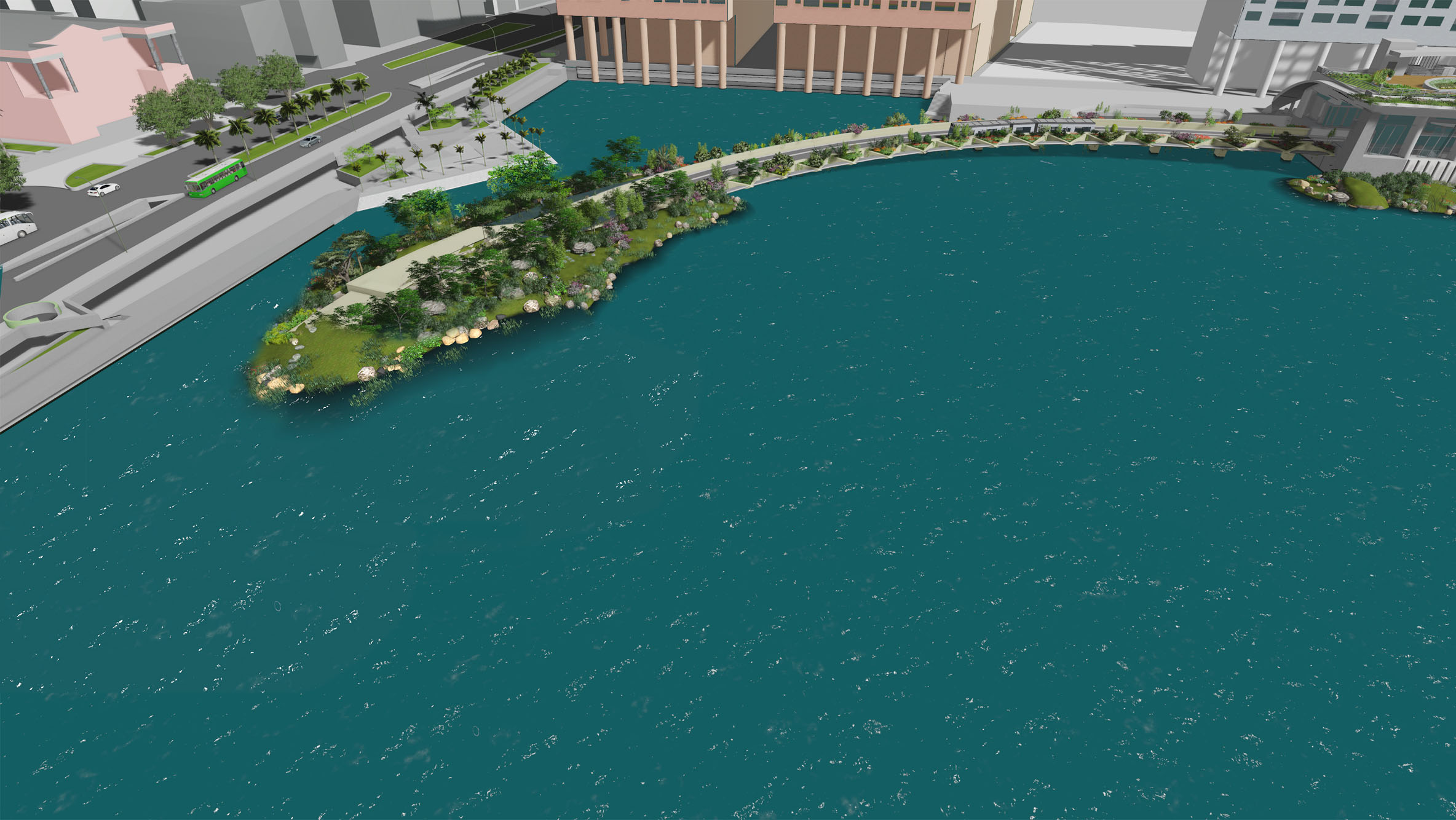 會上,運建辦代表向文遺會介紹南段的設計工作進展情況。當中,南灣站以湖內人工島嶼作為設計概念,將站體外觀美化並融入南灣湖的景觀。而離開南灣站入湖的過渡斜坡路段,主體結構亦儘量降低至南灣湖景大馬路的水平視線以下;另一方面,設計單位亦對過渡斜坡的設計提出初步構思,擬透過綠化和湖內的景觀元素,與南灣湖景觀達致融合。