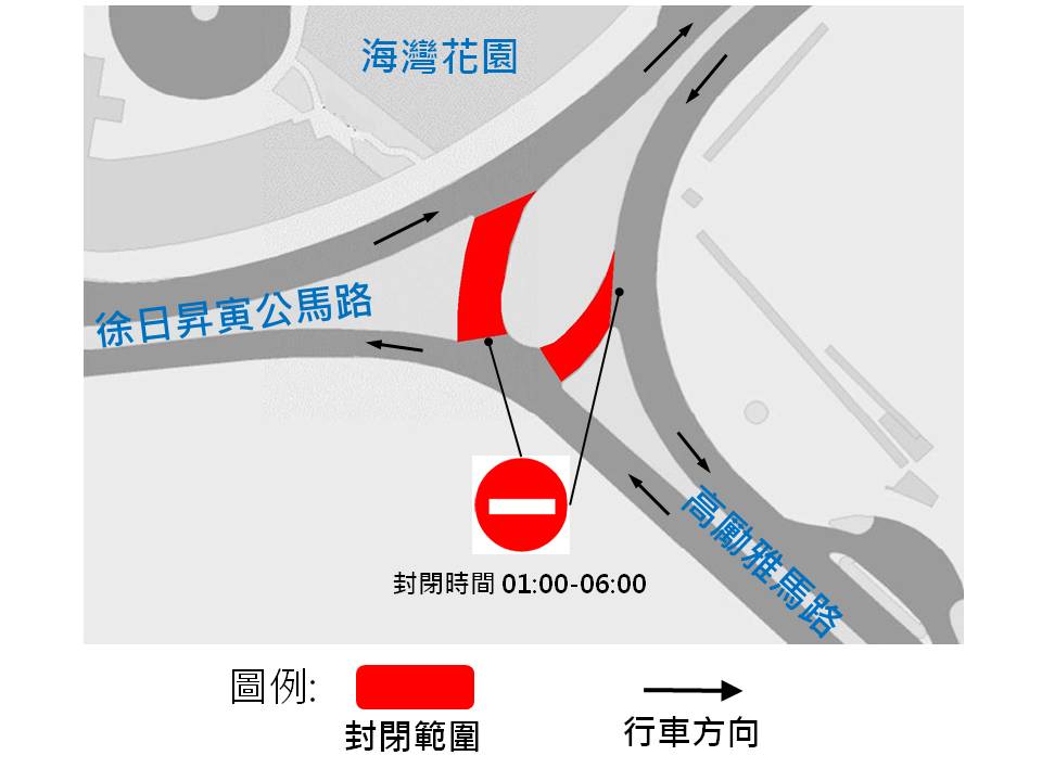 配合民政總署重鋪路面,氹仔高勵雅馬路近徐日昇寅公馬路的路段,本月22日(周六)及23日(周日)實施臨時交通安排,交通事務局呼籲駕駛者留意,小心駕駛。