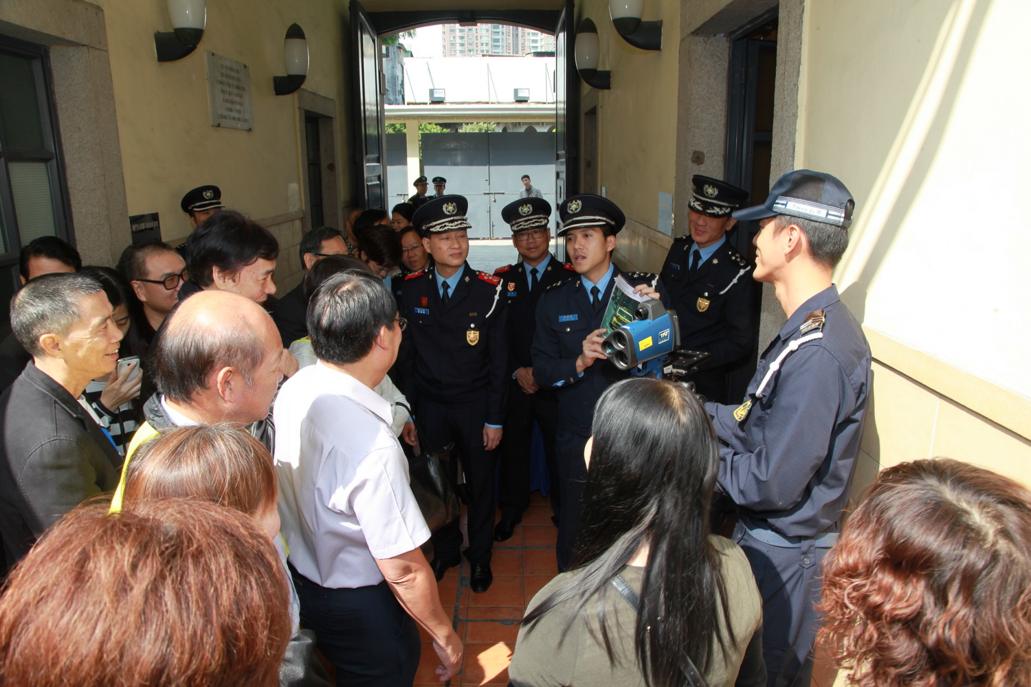 治安警察局今天上午舉辦“社區警務交流會”,來自三個社區團體(街坊會聯合總會、物業管理業商會、民眾建澳聯盟)的主要負責人吳小麗、崔銘文及陳德勝及社區警務主任共三十多人,午前扺達交通廳,局長馬耀權、副局長黎錦權,以及警務單位多位主管熱情接待。