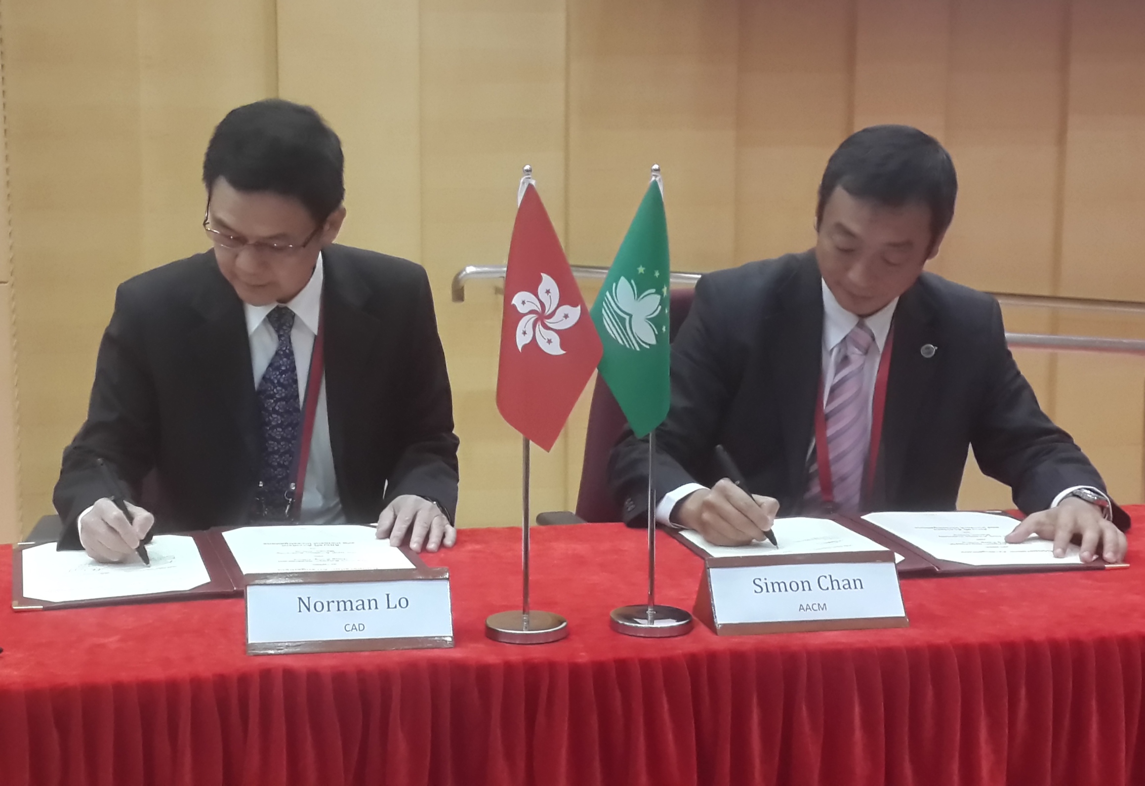 「香港特別行政區民航處與澳門特別行政區民航局在航空器意外和事故調查的合作安排」於今天進行簽署,雙方在調查工作、調查培訓、資訊和專業知識等方面分享資源和給予協助,共同為促進區域航空安全作出更大貢獻。