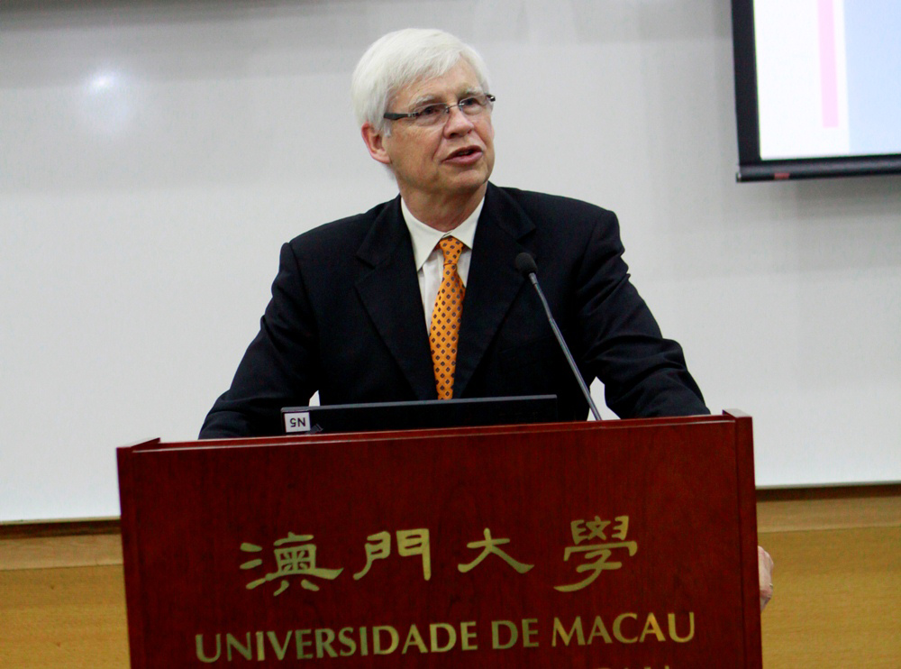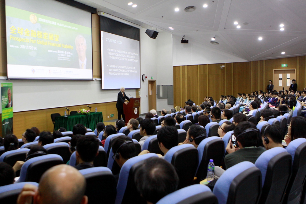 世界著名經濟學家、二○○三年諾貝爾經濟學獎得主羅伯特.恩格爾教授今(25)日於澳門大學任主講嘉賓,以“全球金融穩定展望”為題與本澳多間大學和中學的師生、社會賢達、金融銀行從業員、政府官員、傳媒等超過六百人分享他對穩定全球金融市場的見解。