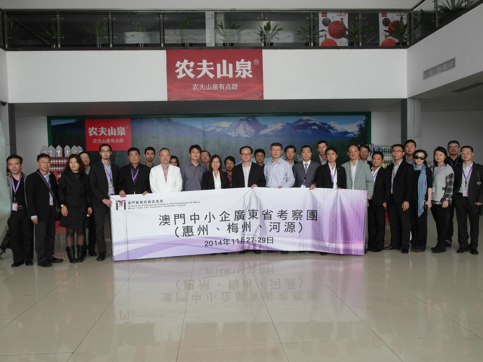 為推動粵澳合作,使本澳更多中小企業瞭解中國內地市場,從而開拓更廣闊之商機,澳門貿易投資促進局與廣東省商務廳於11月27日-29日合辦“澳門中小企廣東省考察團(惠州、梅州、河源)”。期間安排了代表團考察惠州市、梅州市、河源市之高新科技產業園區、認識兩市投資環境及參訪名優企業,並透過企業之經驗分享,讓中小企探尋中國內地市場之商機。是次代表團共三十五人,成員來自多個行業之商會及企業,涵蓋餐飲業、零售業、服務業、地產業等。