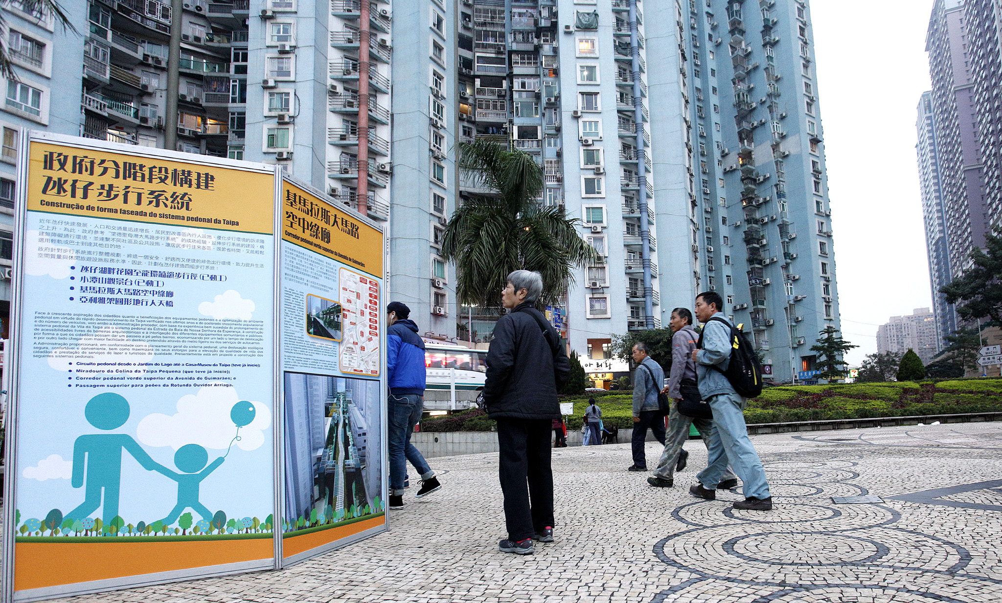 隨着近年氹仔的快速發展,人口和交通量迅速增長,居民對改善區內行人設施、優化步行環境的訴求隨之上升。為此,政府參考“望德聖母灣大馬路步行系統”的成功經驗,延伸步行系統的建設,並逐步落實早年規劃的氹仔四組步行系統計劃,當中氹仔湖畔花園至龍環葡韻步行徑和小潭山觀景台項目已相繼動工;基馬拉斯大馬路空中綠廊和亞利雅架圓形地行人天橋正在設計階段。