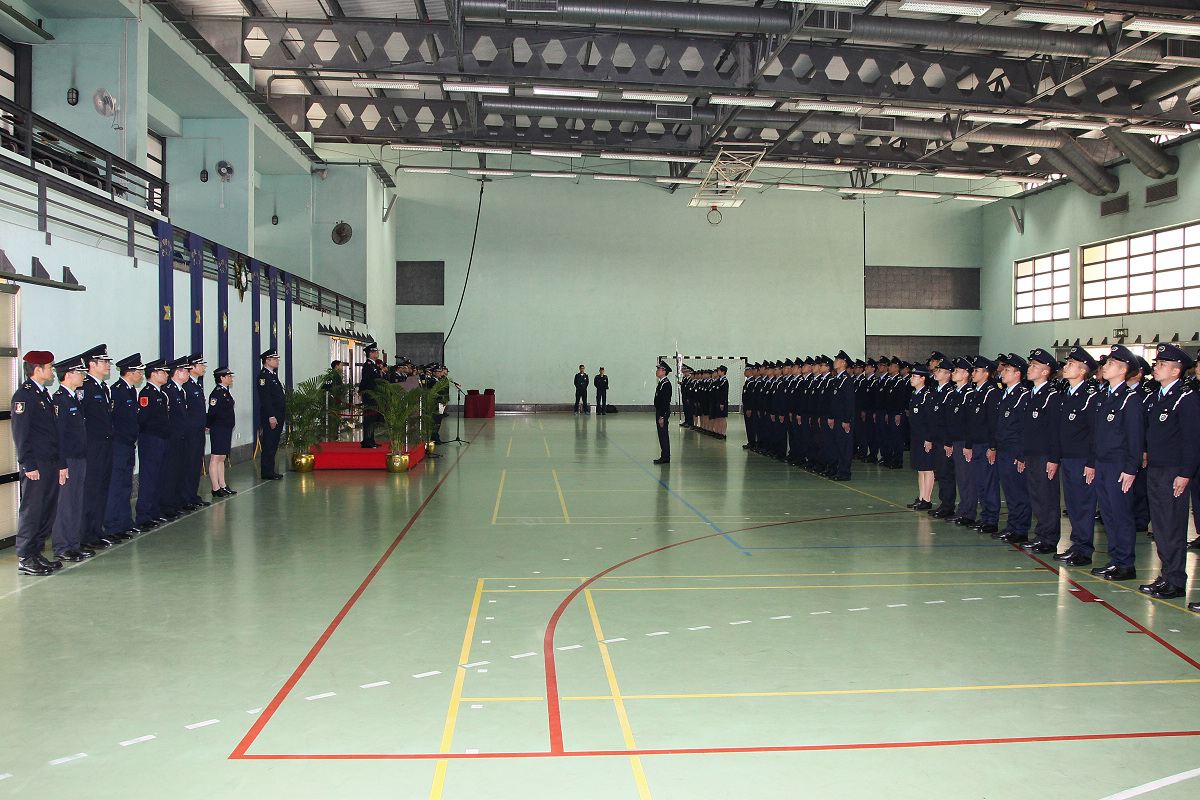 今天(12月9日)上午十二時,在治安警察局特警隊大樓內舉行了155名警員的就職典禮。儀式由治安警察局副局長黎錦權副警務總監主持。出席儀式的還有局內各部門的廳長及負責人,為新警員戴上警章。隨後進行宣誓儀式,效忠澳門特別行政區政府。