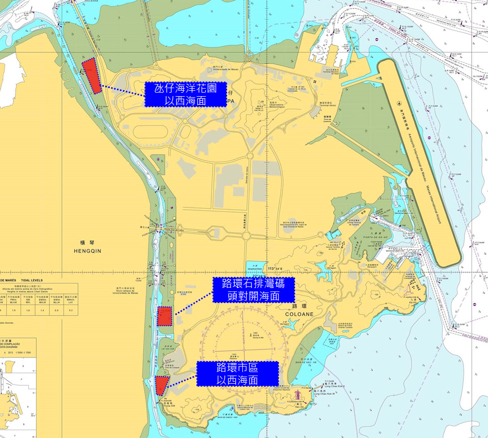基於現時澳門半島已有遊艇泊位,且考慮到未來澳門與氹仔之間的水域需要進行新城填海工程、以及本澳的內港航道和往內港航道較為繁忙等因素,因此選定在路氹航道的附近海面,分階段依次設置三個遊艇停泊區,包括路環石排灣碼頭對開海面、路環市區以西海面和氹仔海洋花園以西海面。海事局將會在上述海面放置浮標和簡單的分隔設施劃出臨時的遊艇停泊區,預計可提供四十至五十個補充性的泊位,以提供基本的遊艇停泊服務,滿足不同遊艇的需求。停泊區的遊艇將以小艇接駁方式往路環碼頭附近登岸路環碼頭登岸,由於路環碼頭本身已有一定的陸路交通配套,能方便遊艇旅客到本澳其它景點參觀,同時亦能為路環市區、十月初五馬路及沿岸景觀增添生氣,帶動該區旅遊發展。