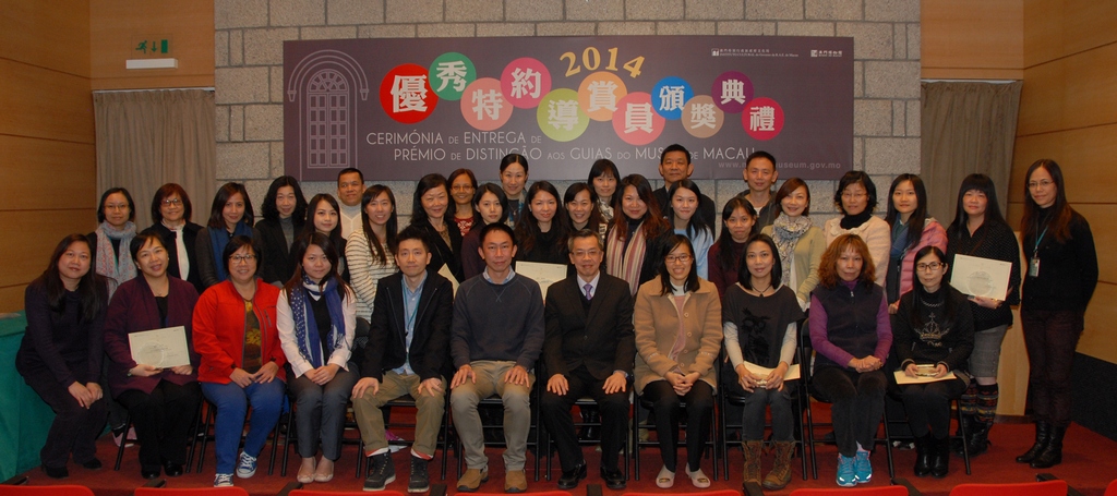 文化局澳門博物館於日前(十二月十二日)舉辦“二零一四年度優秀特約導賞員頒獎典禮”,澳門博物館代館長薛啟善、代處長巫宏明及導師李嘉慧向本年度為澳門博物館提供社會服務的優秀特約導賞員頒發獎項,藉此鼓勵長期為公眾和學校教育作出卓越貢獻的特約導賞員。