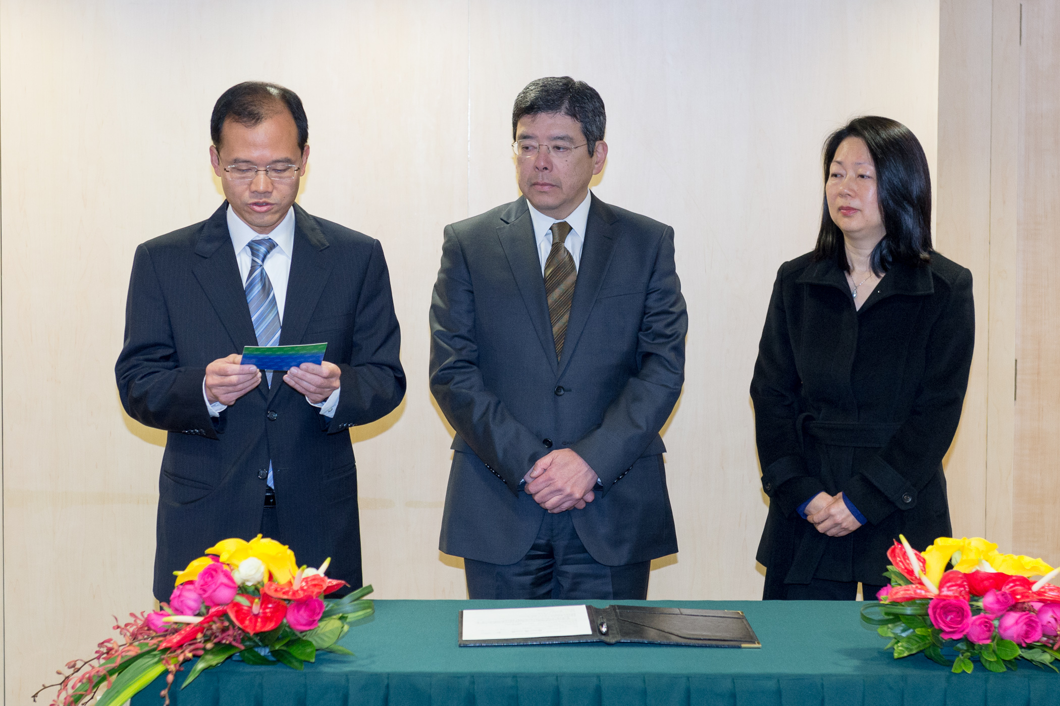 電信管理局及房屋局今(15日)舉行局長就職儀式,在運輸工務司司長羅立文監誓,並在運輸工務司司長辦公室主任張翠玲見證下,電信管理局局長許志樑及房屋局局長楊錦華宣誓就任。