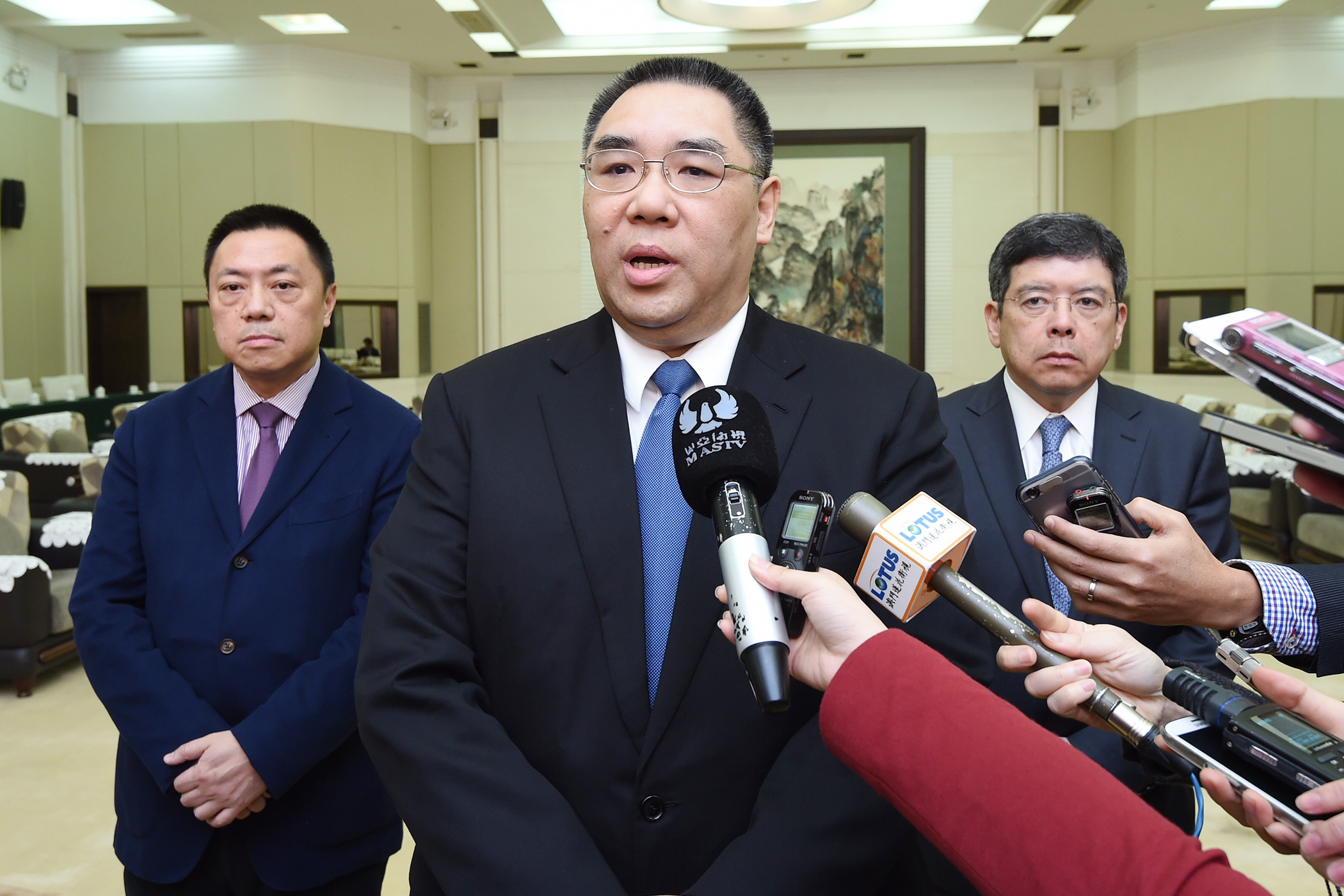 他又關心到中國廣東自由貿易區的設立,並表示充分理解到自貿區帶給澳門的發展機遇。他續指,特區政府過去一年致力發展經濟,改善民生,整體經濟保持正增長。同時,特區現正積極構建“世界旅遊休閒中心”及發展“中國與葡語國家商貿合作服務平台”,並大力促進經濟多元發展、區域合作及人才培養等工作。