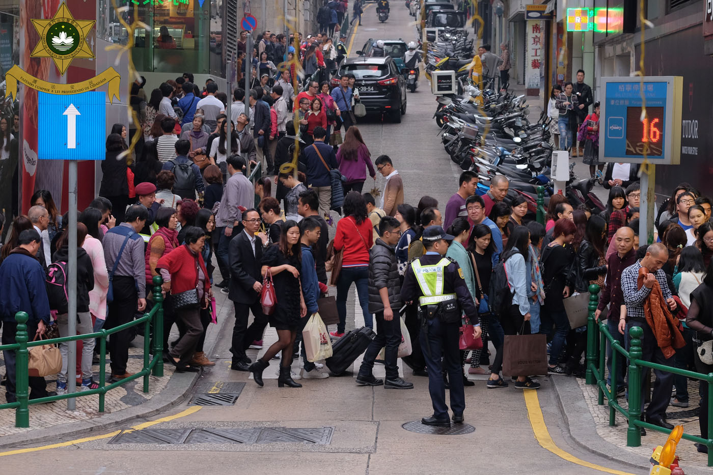 警方在春節前,已及早與相關部門籌劃準備,部署警務廳、交通、特警、出入境等多種警力在不同崗位作人群管理。今年人流仍以新馬路、議事亭前地和大三巴一帶最為擁擠,警方持續評估狀況,由年初三至初六,由於該四天午後至傍晚人流特別密集,故根據預案在新馬路實行了第一級人潮管制措施,期間市民和遊客積極配合警方現場的指示,和諧有序行進,而措施以外時段則透過安排警員在道路接壤點引導,已可有效紓緩情況;事實上,措施實行期間或會因繞路等而帶來少許不便,然而出於安全和秩序的需要,社會均普遍理解和支持,措施整體上取得良好效果,達到預期目的。