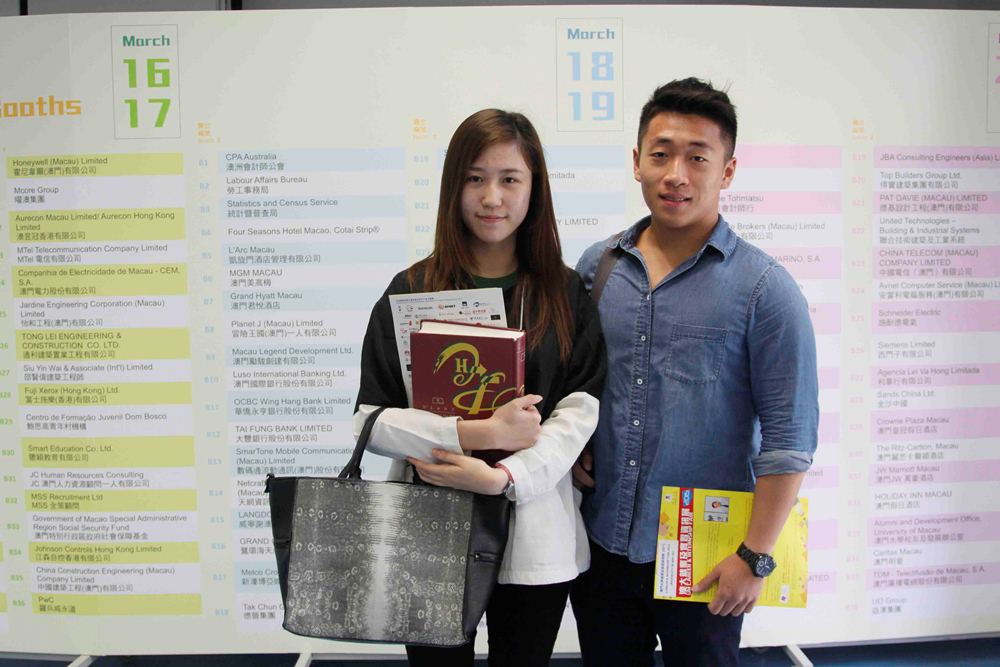 資訊展由本月16日至20日在澳大新校園舉行,除招聘攤位和講座外,更提供即場面試,讓找工作、申請和面試一站式完成,促成就業配對。招聘講座多達35場,邀請相關教授、導師和各領域專業人員講解職業生涯規劃、就業方向、不同行業的發展前景和入職要求等,吸引了不少學生到場瞭解職場動向及求職資訊。就讀大四葡文系學生羅佩絲說:“這兩天努力收集不同企業的資訊,盡量知己知彼,最後一天遞交覆歷表。"另一位就讀大三經濟系學生蔡佳偉說:“資訊展和講座有助我清晰未來擇業方向,及早多作聆聽,掌握先機。”