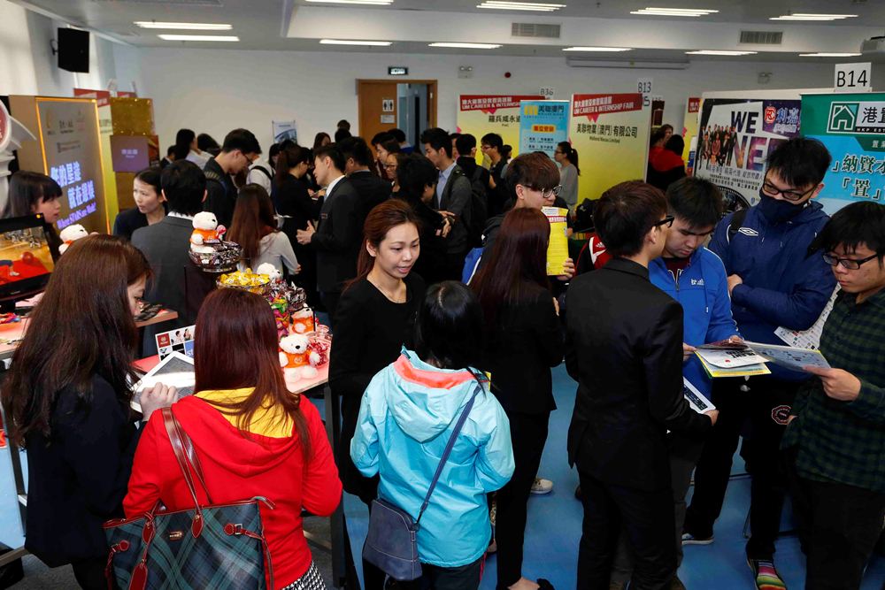 澳門大學在新校園首次舉辦的澳大就業及實習資訊展2015今(16)日開鑼,一連五日於澳大學生活動中心舉行,超過100家企業提供超過5,000個職位,為歷年最大型的就業展,吸引不少學生到場了解就業資訊和尋找工作機會。