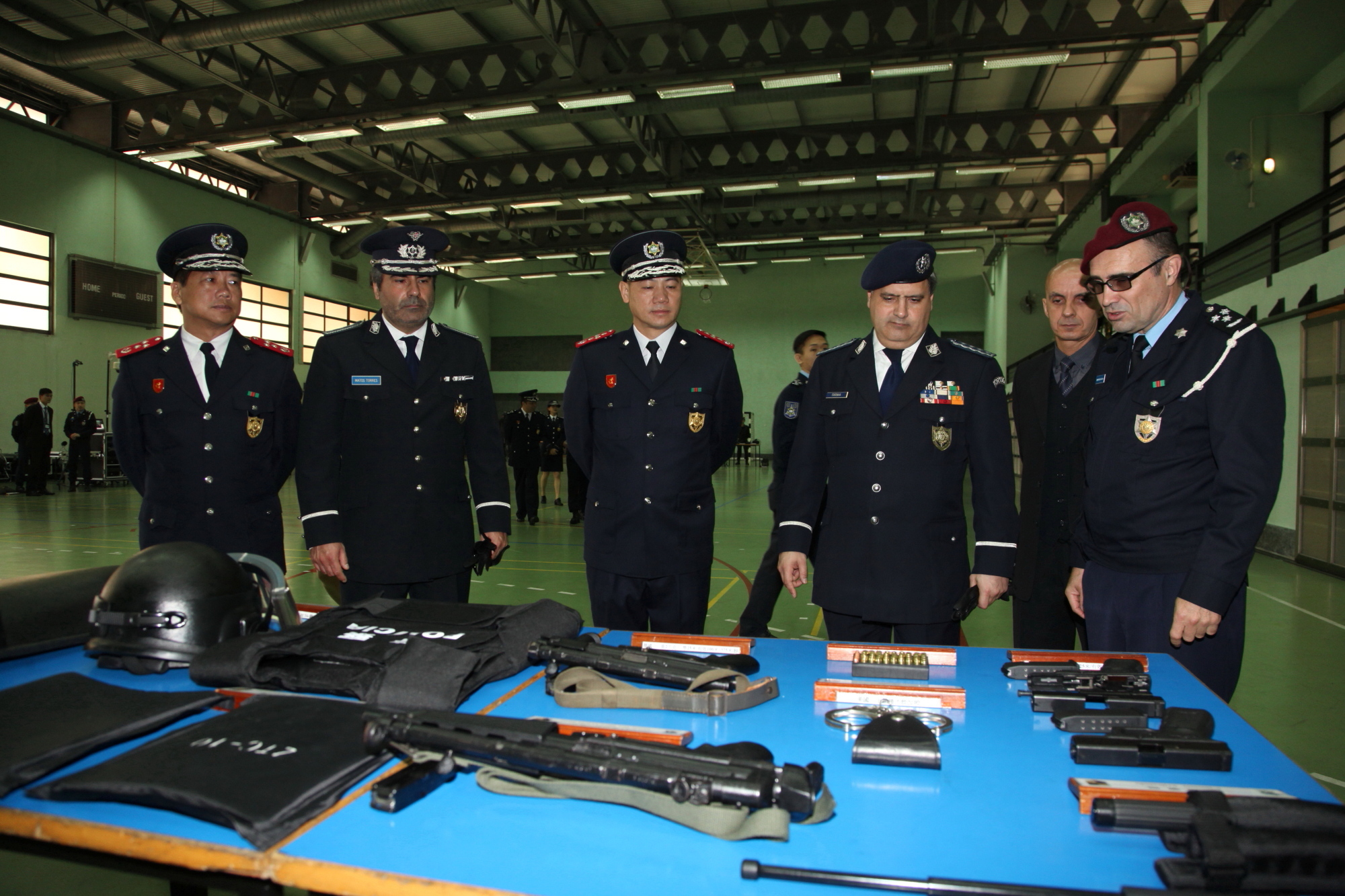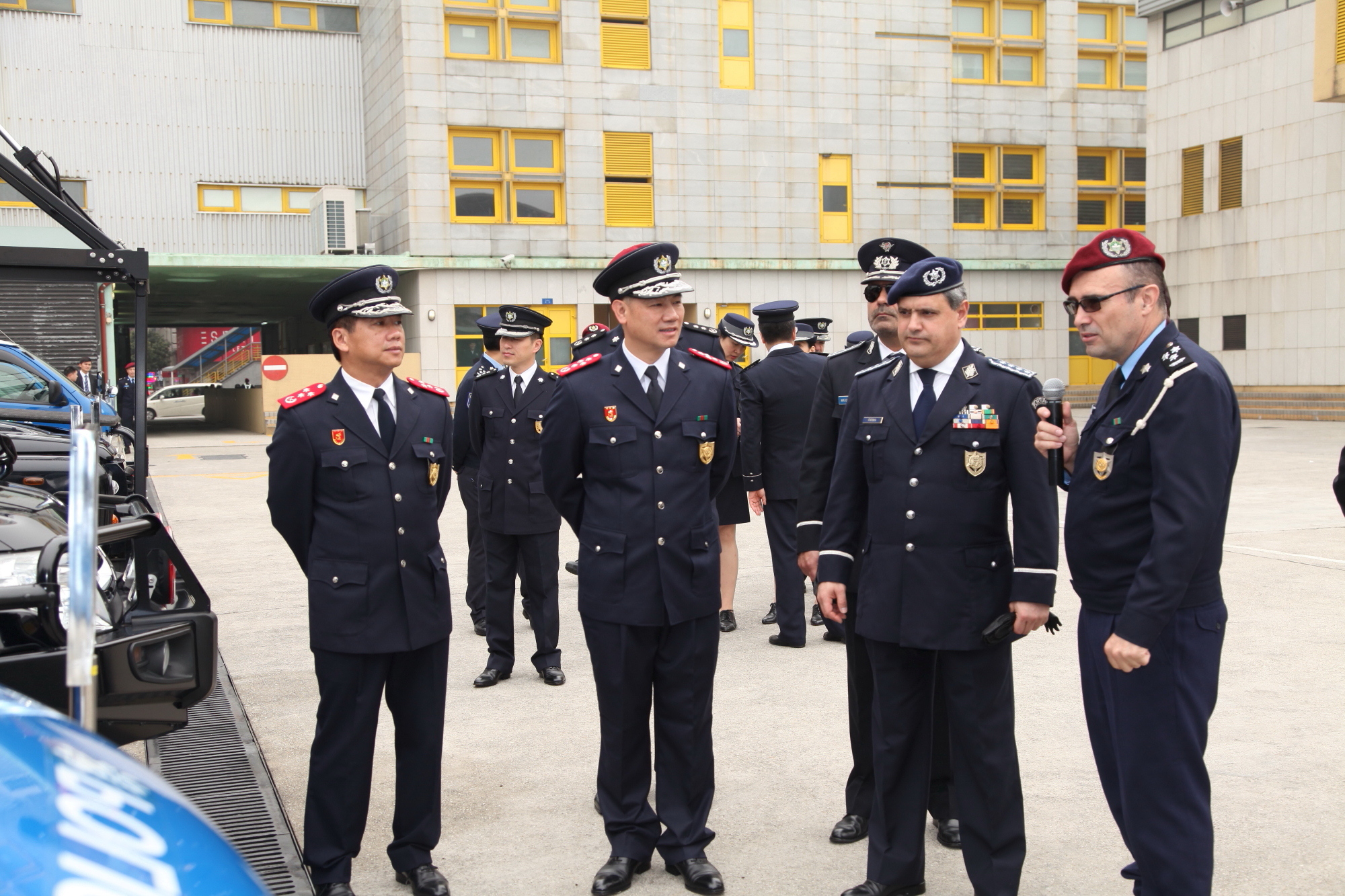 嘉賓於上午十時到達關閘特警隊總部,在出席儀仗隊的歡迎儀式後,與治安警察局一眾官員會面及交流,先聽取治安警察局的簡介及最新工作情況,其後繼續參觀特警隊的特種車輛、防暴及排爆等裝備;防暴隊亦同場示範了防暴盾牌的陣式應用。嘉賓對有關裝備的展示及相關的工作甚感興趣,並主動提出了問題和意見,互動氣氛良好。