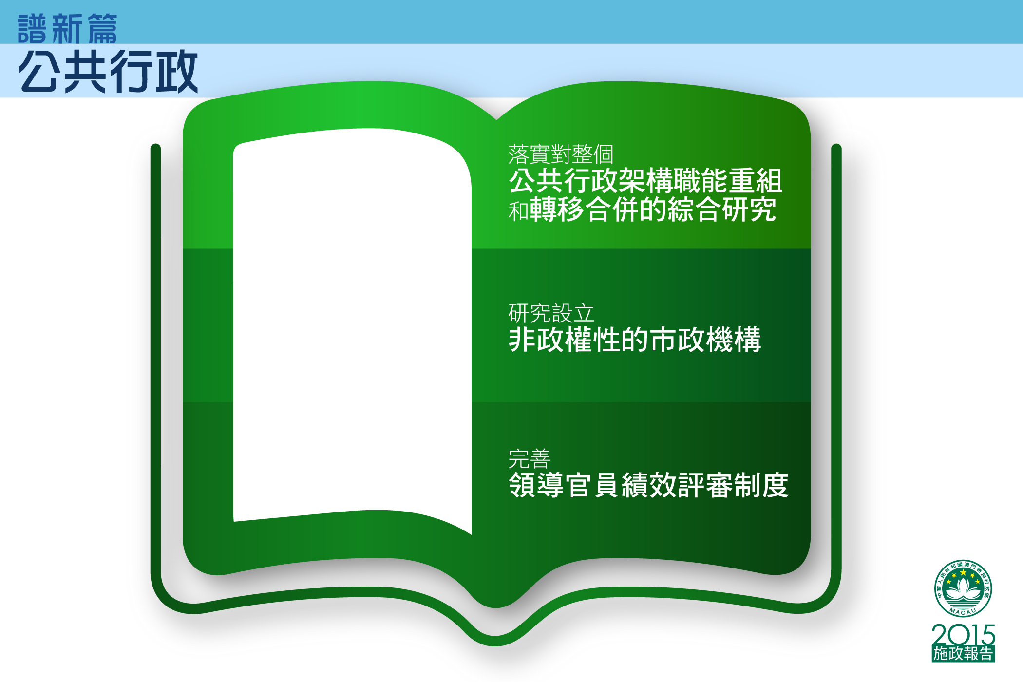 落實精兵簡政是特區政府施政的重點。今年,落實對整個公共行政架構職能重組和轉移合併的綜合研究,並改善跨部門合作機制,提升公共行政效率。此外,根據《澳門基本法》的相關規定,研究設立非政權性的市政機構。
