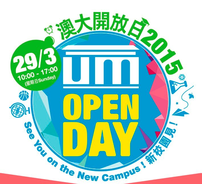 澳門大學將於今個星期日(3月29日)上午10時至下午5在新校園舉行首個大型開放日,屆時將有多個校隊和學生傾力演出,還有學院和實驗室參觀、國際美食、攤位遊戲、大抽獎等活動,歡迎大眾到綠草如茵的校園裡渡過愉快的週日。而開幕禮謹訂於當天十一時正在圖書館廣場舉行。