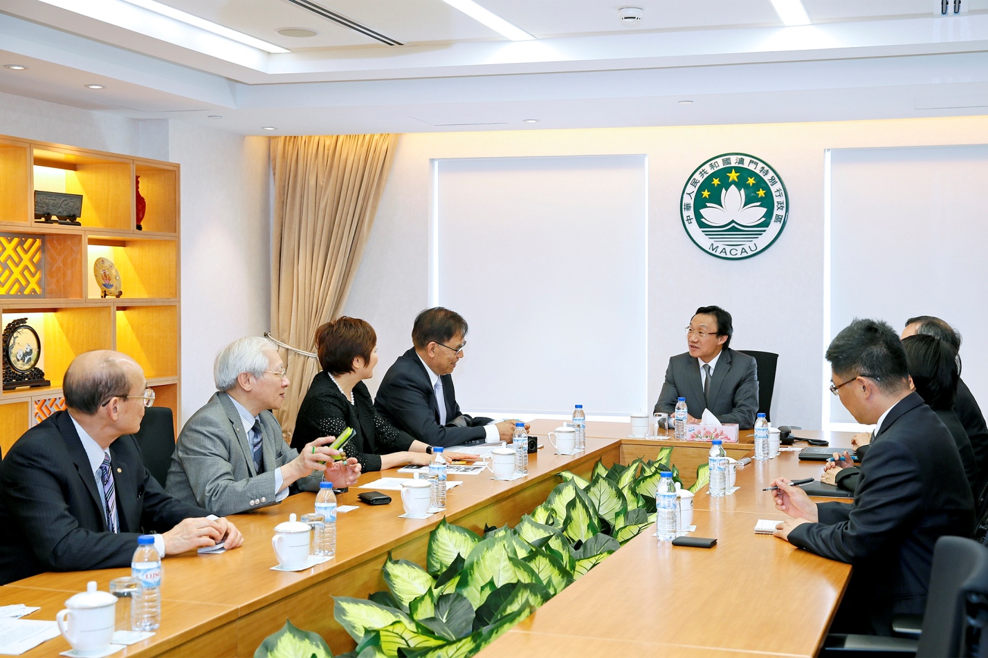會面中,雙方還就促進本澳影視及文化產業發展交換意見。澳門影視傳播協進會梁官漢、陳樹榮、朱威權、陳佩楠,社文司司長辦公室主任黎英杰,顧問林韻妮、林曉白參加會見。