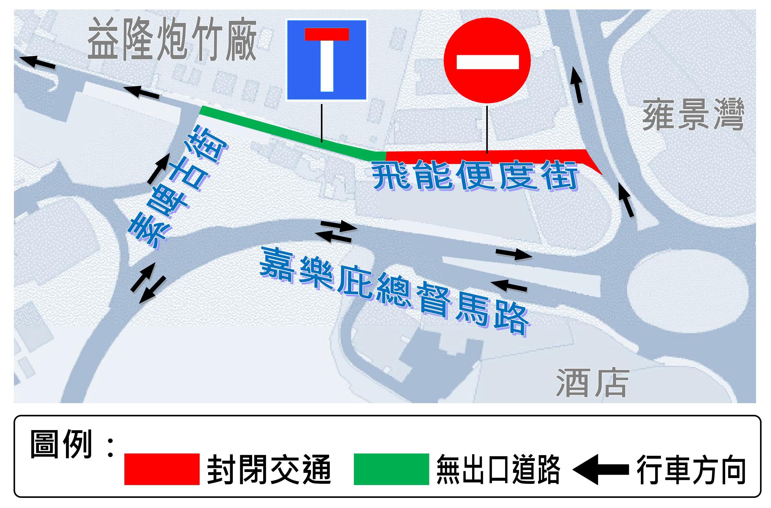 氹仔飛能便渡街交通改道示意圖
