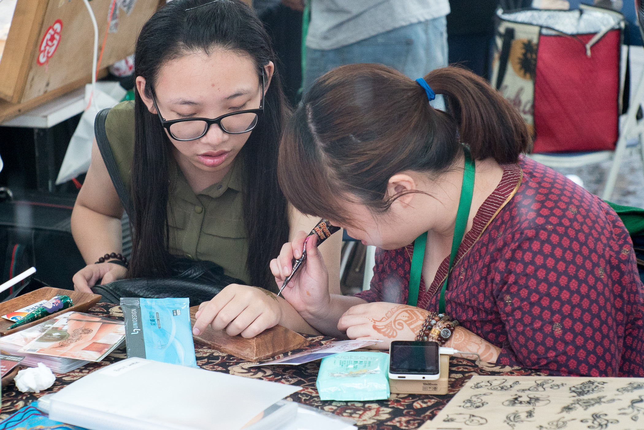 新聞局攝影師梁卓能捕捉了市民在塔石藝墟的情況:有攤位展示作品,有人精心挑選心頭好,有人全神貫注實踐手作,更有人在3D地畫前, 10幀照片就簡單地概括了藝墟的面貌。市民可以透過 “澳門政府新聞”手機app欣賞照片,更可於今日起一連3日到現場感受本土文化創意。