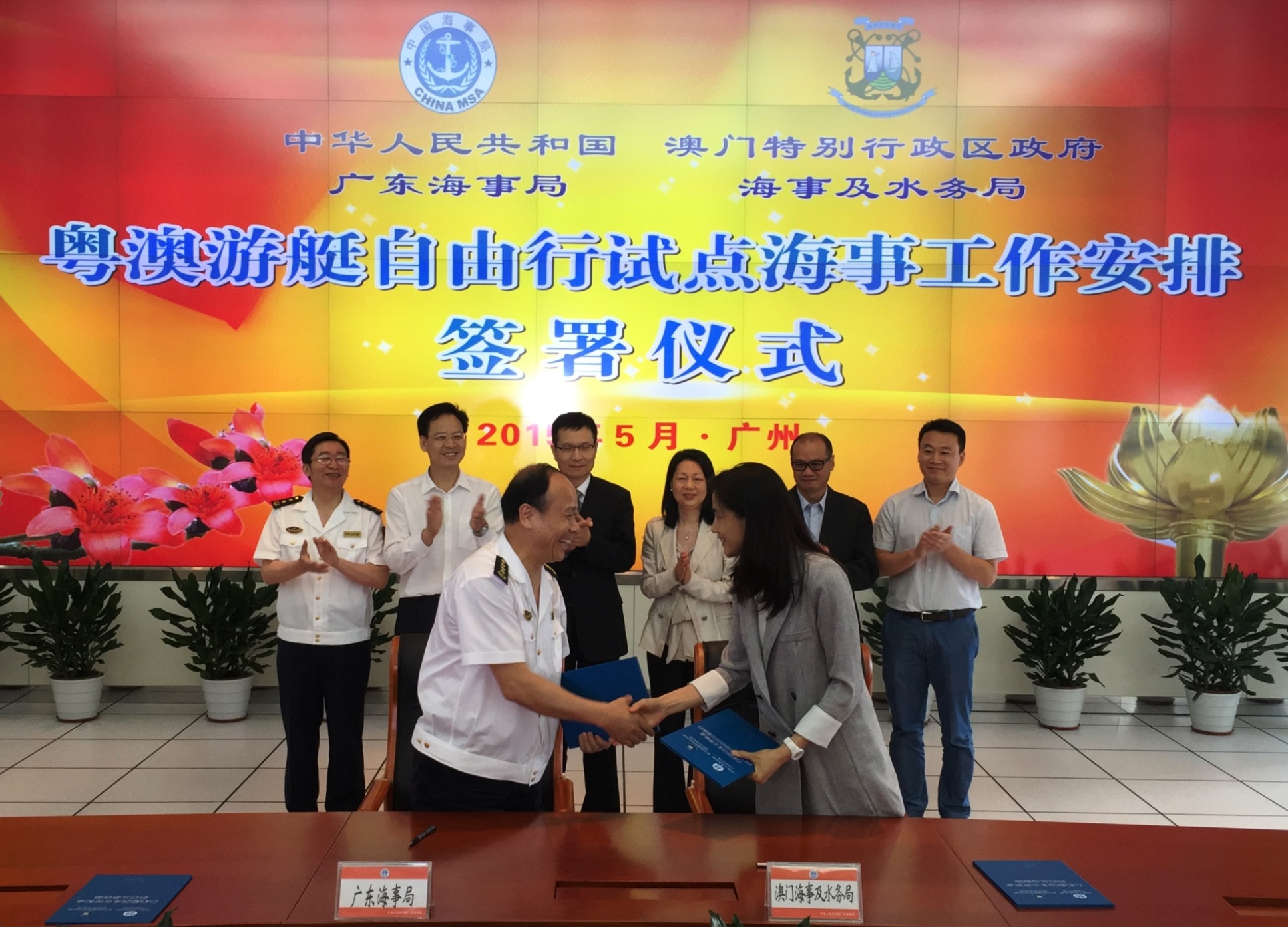 為進一步推進粵澳遊艇自由行,澳門海事及水務局今日與廣東海事局簽署了《粵澳遊艇自由行試點海事工作安排》(下稱《工作安排》),以有序落實遊艇自由行項目的各項細化措施和規範。