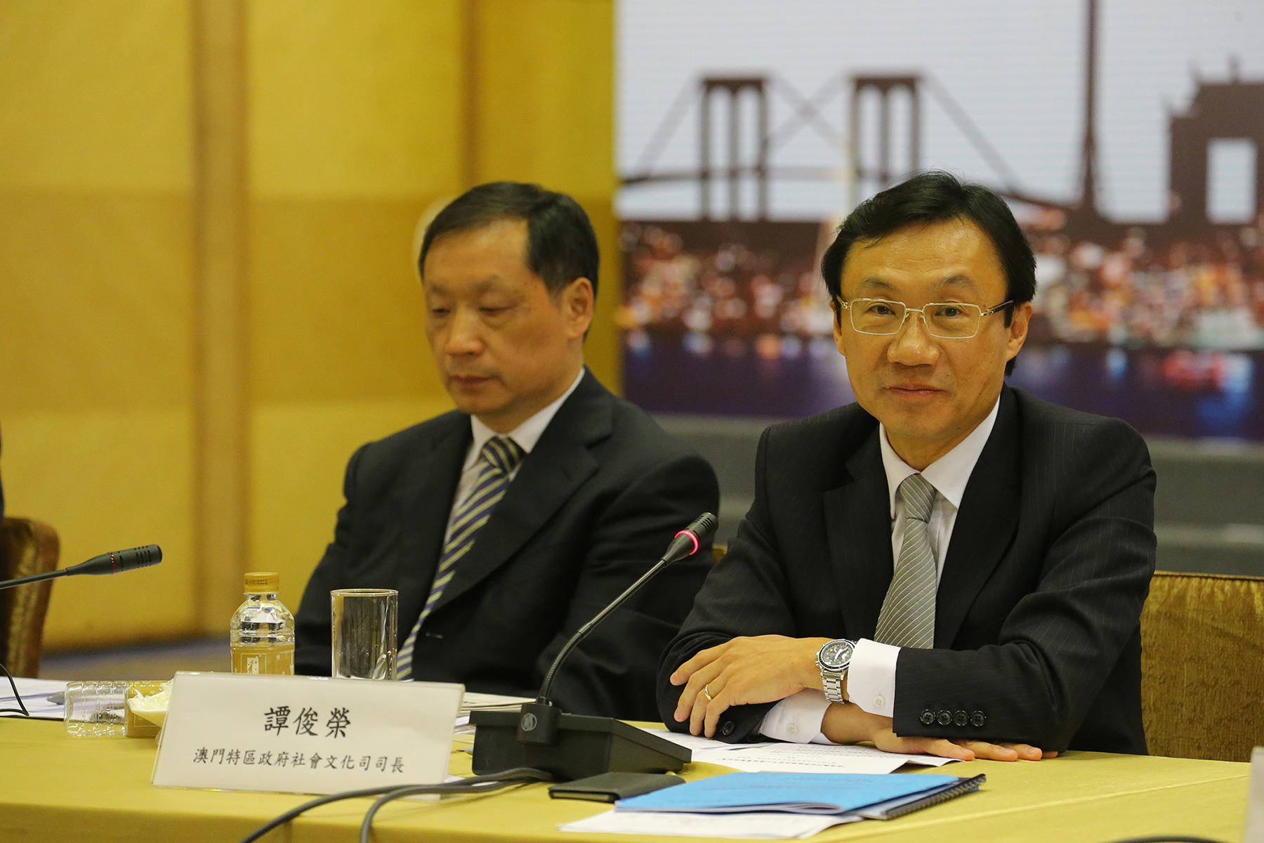 社會文化司司長譚俊榮在總結發言時指出澳門要發展成世界旅遊休閒中心具備優勢,他提到今年年初澳門獲邀參加由世界旅遊組織(UNWTO)和聯合國教科文組織聯合舉辦的第一屆世界旅遊文化大會,與會者對澳門能把文化及旅遊聯合在一起發展感到興趣,因很少地方能做到。此外,區域合作亦有助促進澳門世界旅遊休閒中心建設,尤其在粵澳合作上,兩地總體目標一致,以澳門為中心輻射到西部城市,相信兩地合作可達到雙贏。澳門亦將結合會展、商務、文化創意產業一起來發展旅遊,而智慧旅遊亦是澳門旅遊業的發展方向。最後,譚俊榮代表澳門特別行政區政府感謝國家旅遊局一直以來的支持。